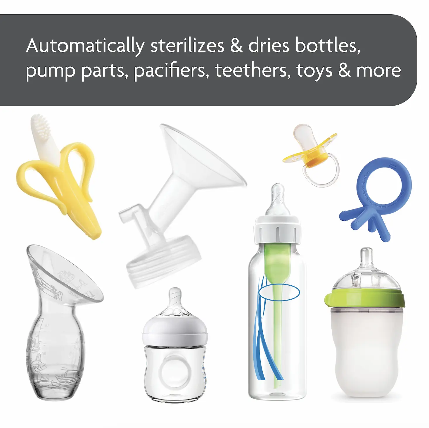 ·Dries 33% Faster than Other Sterilizer Dryers: Automatically sterilizes & dries bottles, breast pump parts, pacifiers, teethers, sippy cups and other accessories from any brand in 1 easy step, saving you time