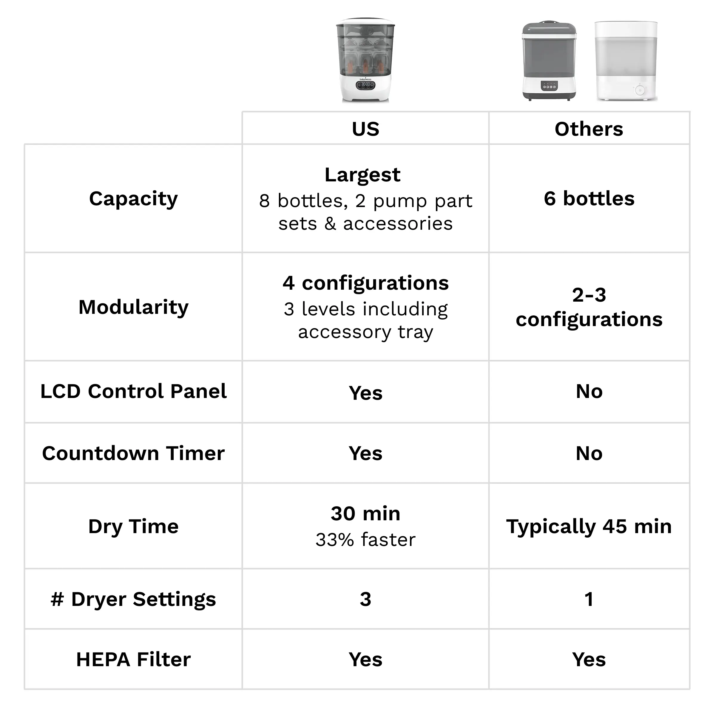 ·Includes replaceable HEPA-filter to dry your bottles with 95% germ-free air