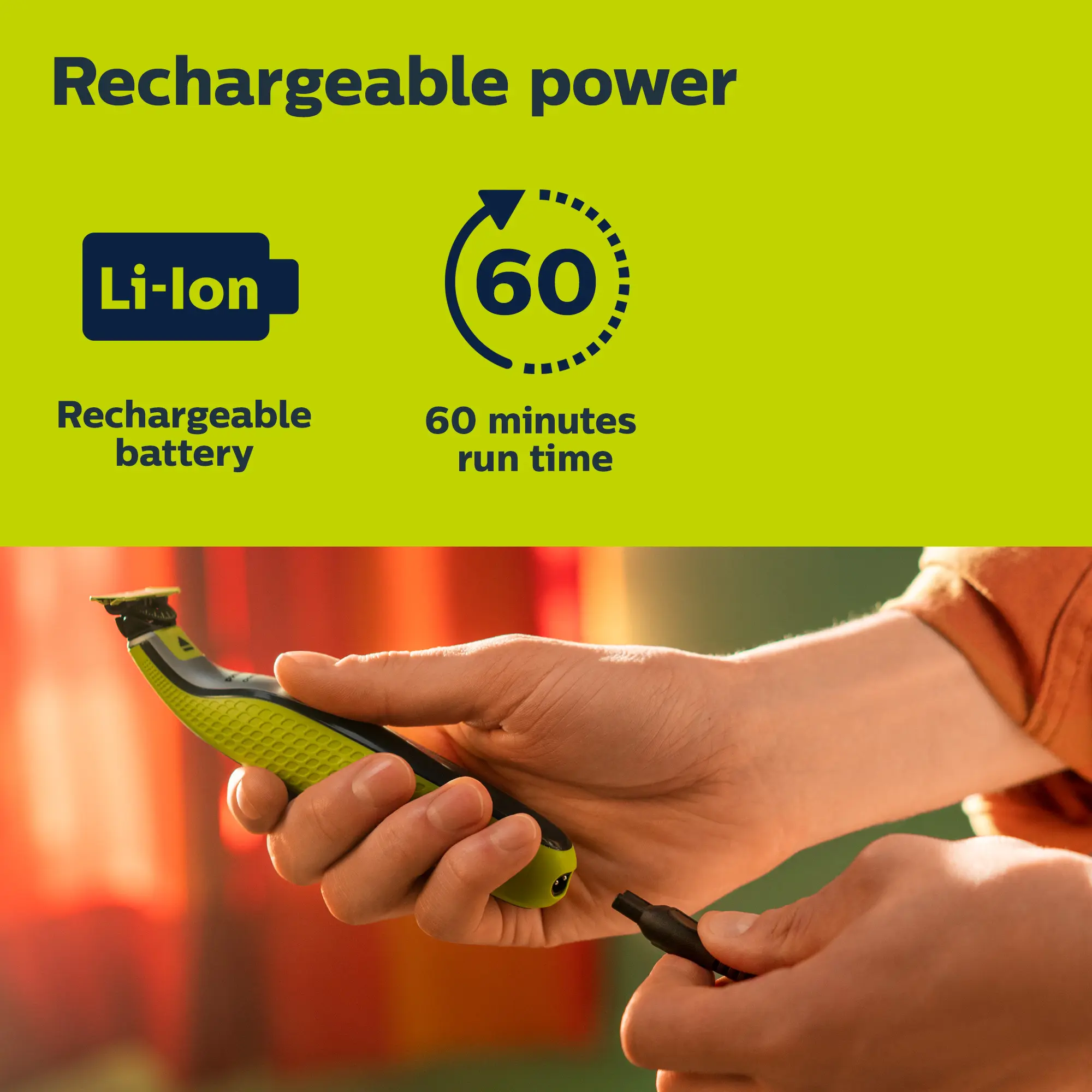 ·Rechargeable OneBlade 360 Face + Body can trim, edge, and shave any length of hair. Shave is not too close so your skin stays comfortable.