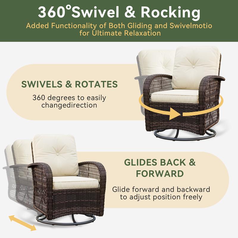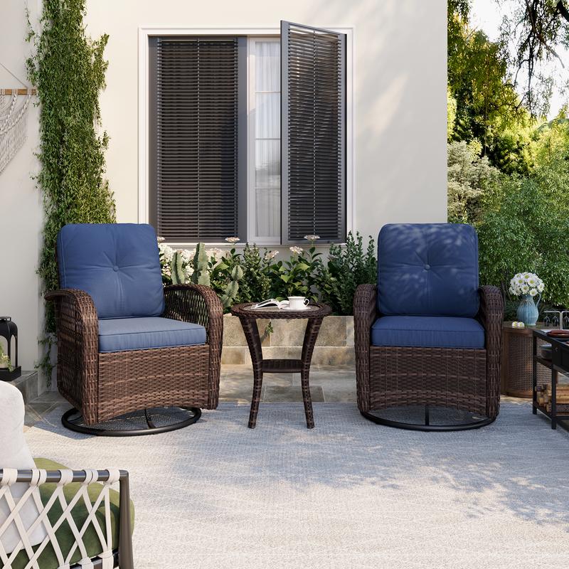 This patio furniture set is designed for outdoor use. The swivel rocker chairs and thickened cushions make it a comfortable choice. The table adds versatility, suitable for various outdoor activities. Upgrade your porch with this set. 🌿