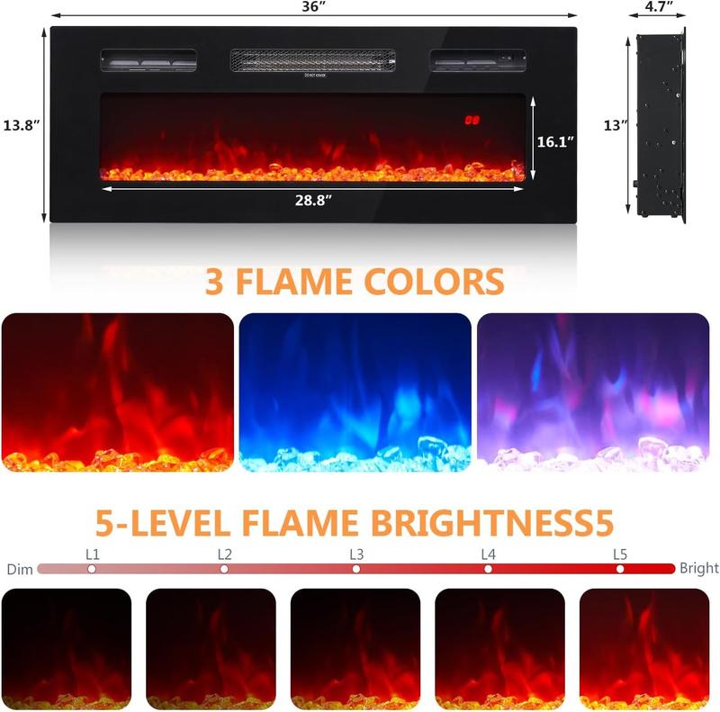 ·36" Electric Fireplace: Adds warmth and ambiance.