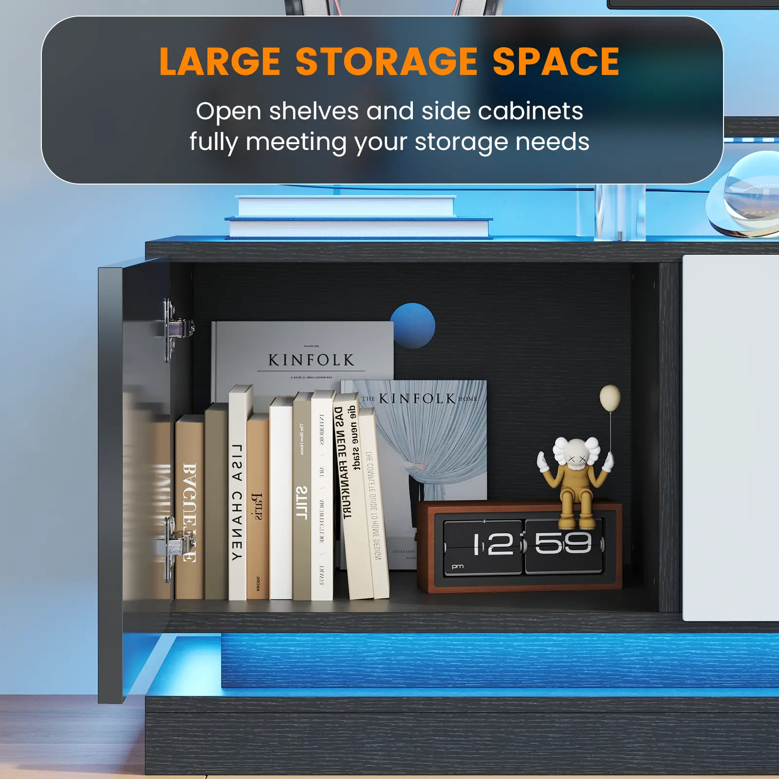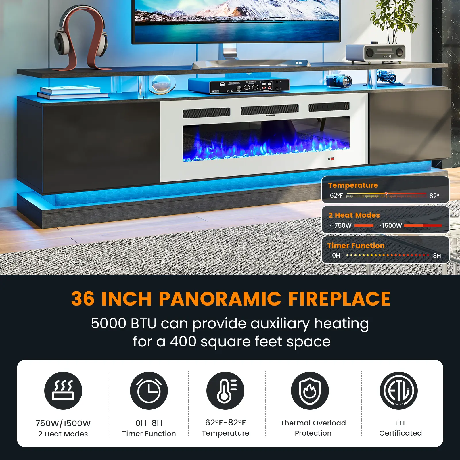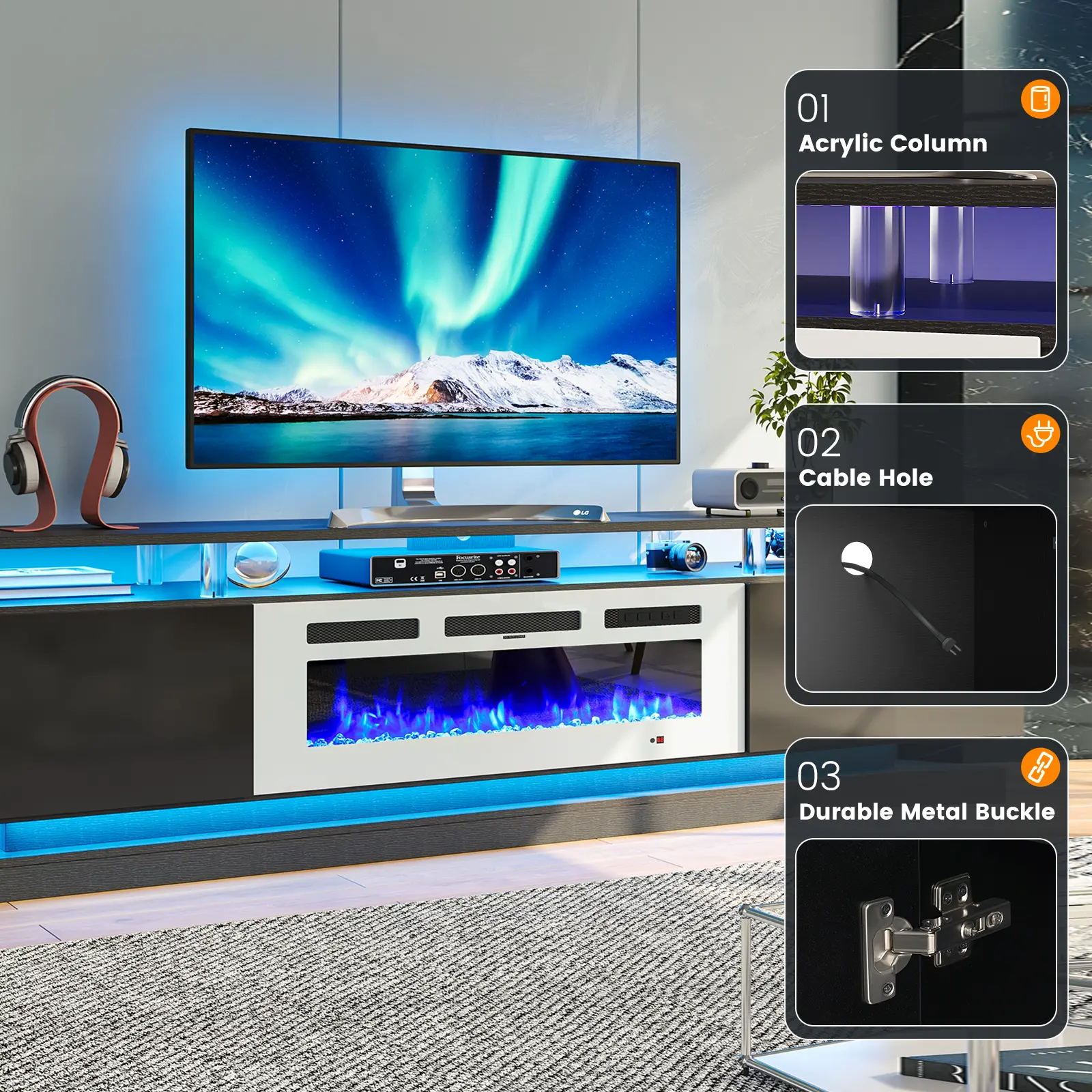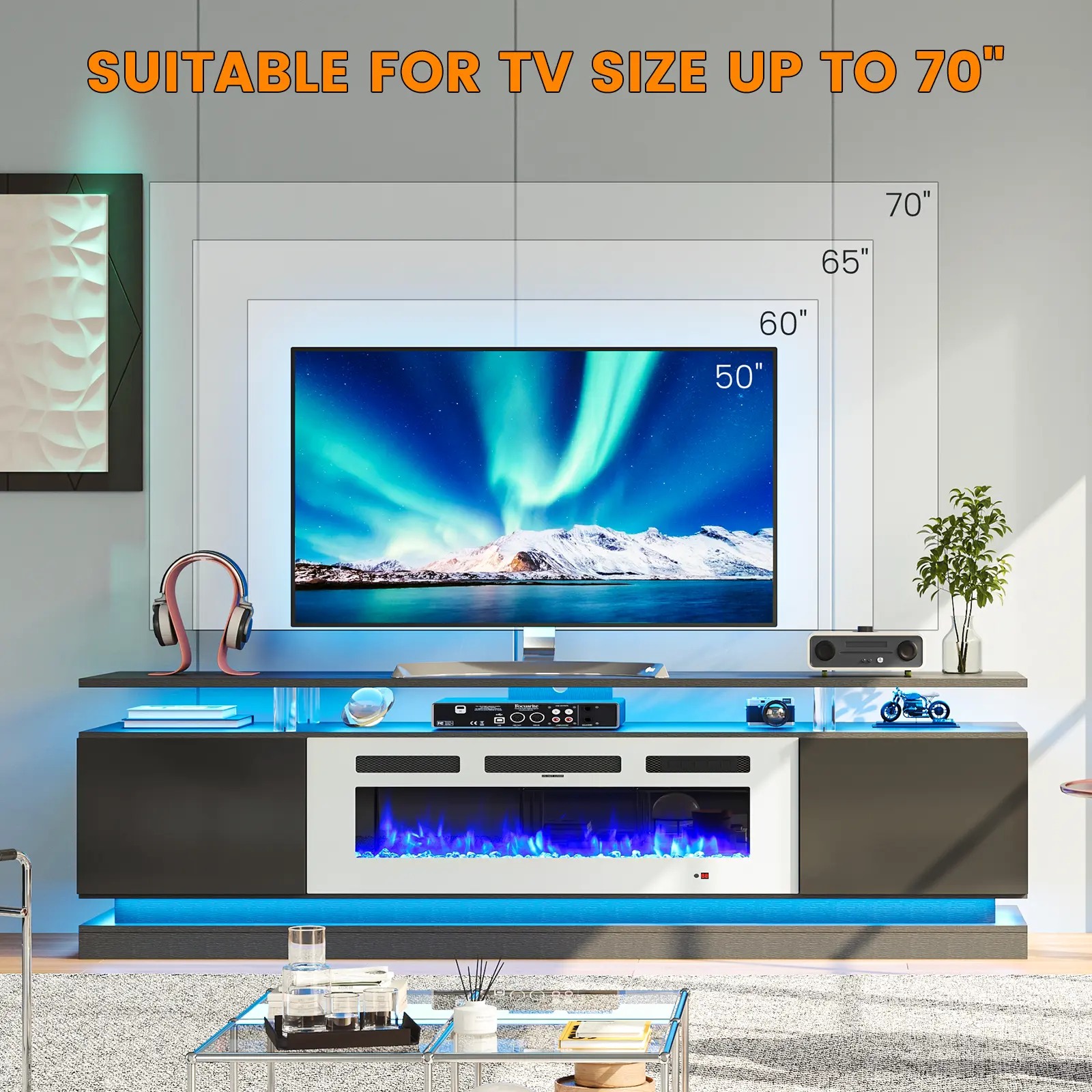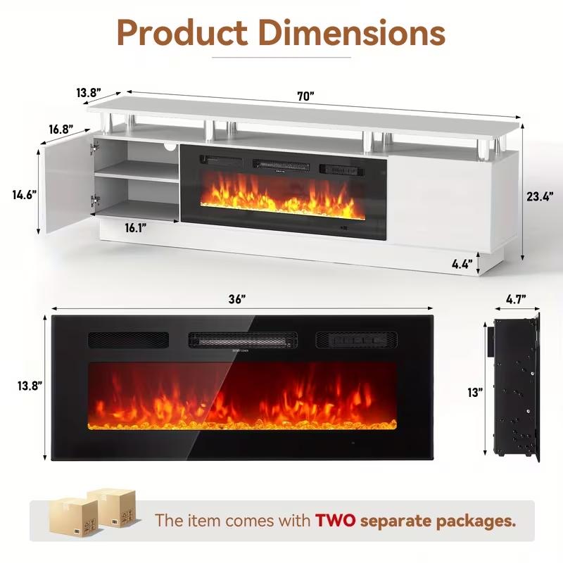 This TV stand is ideal for those looking to combine a fireplace with an entertainment center. It provides ample space for TVs and other entertainment devices, making it a versatile addition to any living room.
