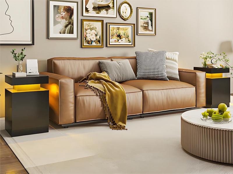 This nightstand set is ideal for bedrooms. The LED soft glow and storage cabinet make it a practical and stylish choice. Enhance your bedroom with this functional and aesthetically pleasing nightstand set.