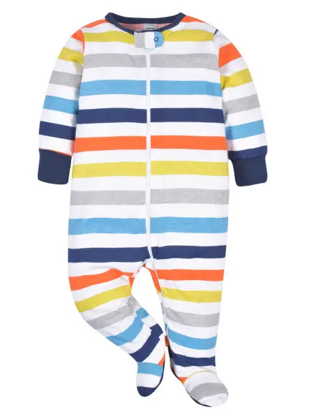 The perfect combination of creative and comfy, this 4-pack of baby boys' Sleep N' Plays will become his favorite. Themed prints and coordinating colors offer a variety of adorable choices for dressing him each day. They're made using 100% cotton jersey. The soft, breathable fabric keeps him cool and comfy no matter what he gets into. Mom will appreciate how convenient the front zip opening makes diaper changing and dressing. Just slide him into the Sleep N' Play and zip to close. The soft tab zipper cover at the neck protects his chin from scratches. Machine wash and dry fabric makes laundry day simpler. Just toss this clothing into the hamper with the rest of the easy care items for stress-free cleaning. This set is an ideal choice for gifting to a special new or soon-to-be mother!