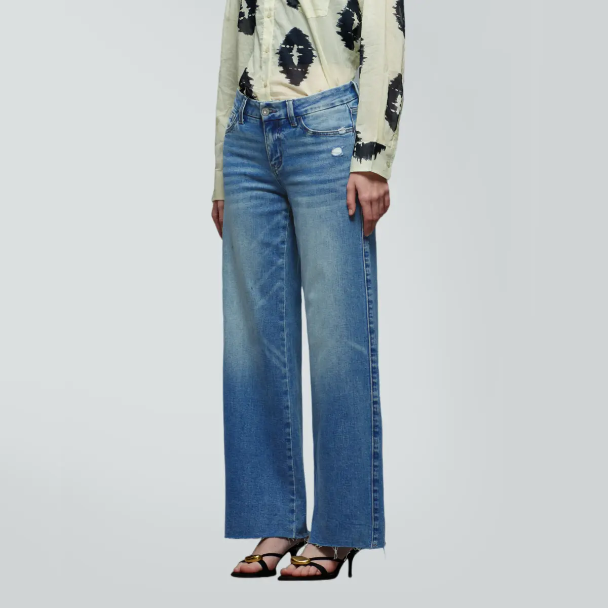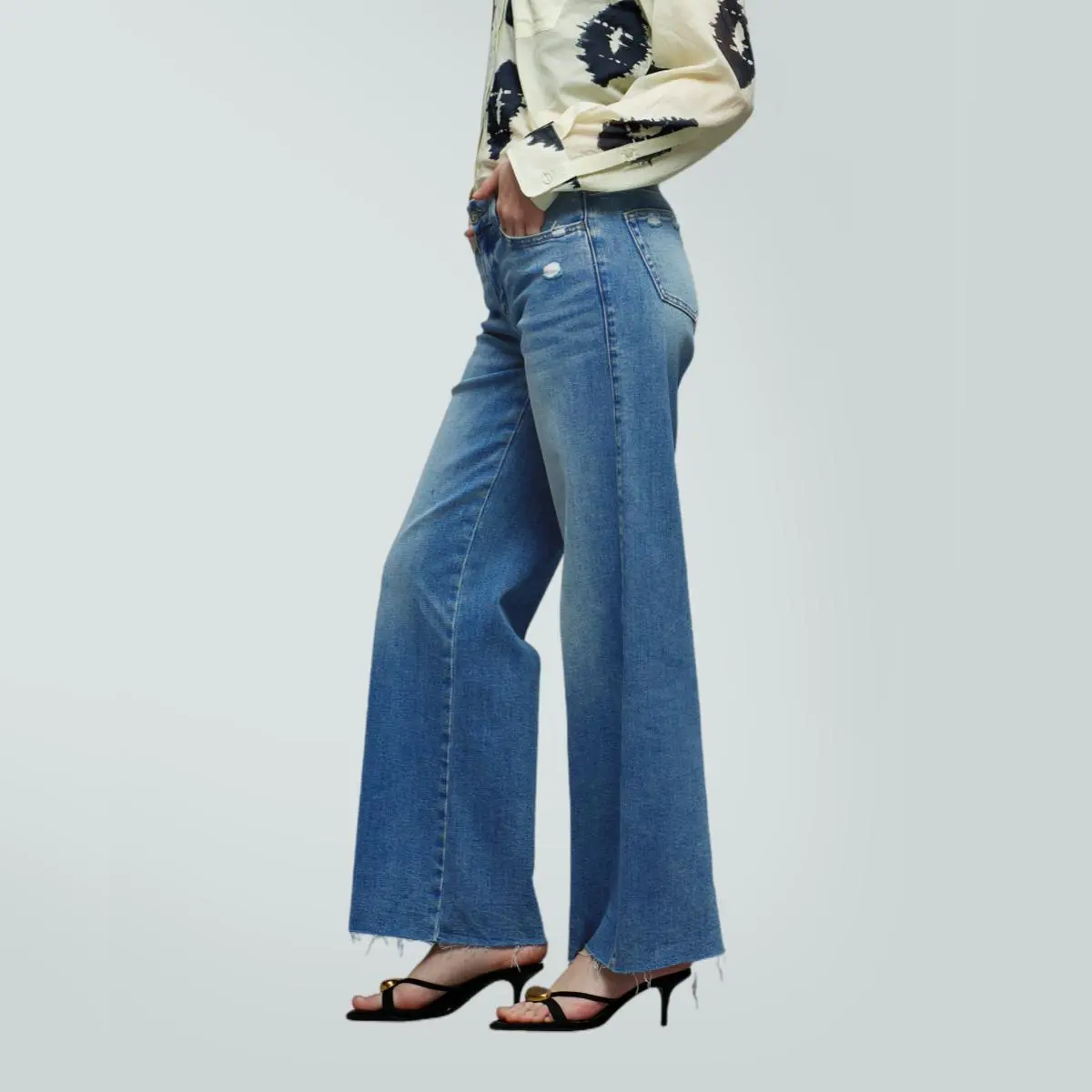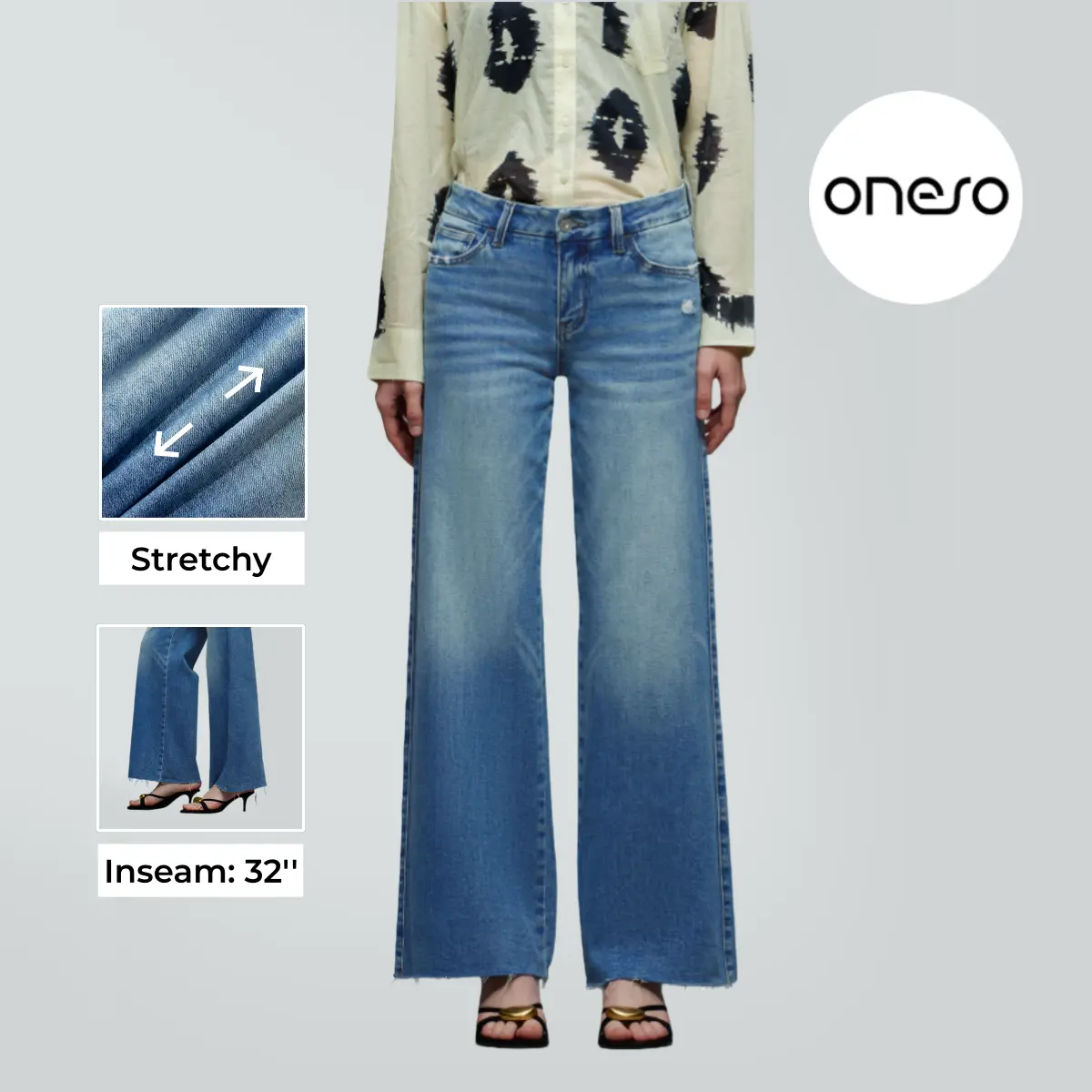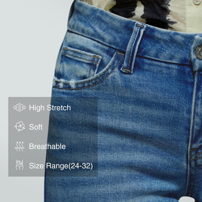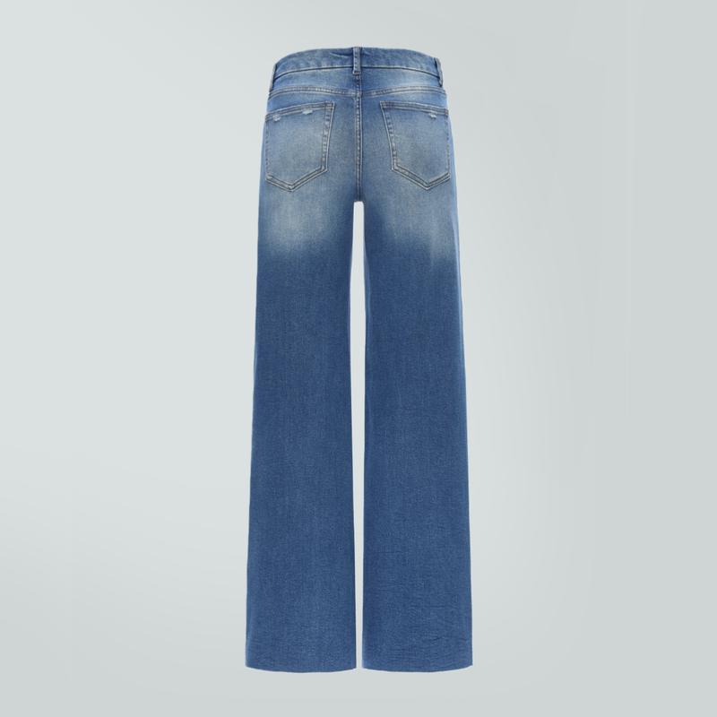 5. Ella ONESO On Target Stretchy Wide Leg Jeans Mid-low Waist Distressed Raw Hem Denim Pants BBL Baggy Vintage Casual Streetwear New Year's Gift
