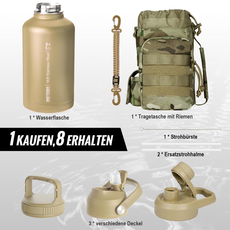 I love my OneTigris 64oz stainless steel water bottle! The insulation is fantastic — it keeps my drinks cold all day and hot for hours. The included pouch makes it super easy to carry around, and the different lids and straws add great versatility. The bottle is very sturdy and leak-proof, so I don’t worry about spills in my bag. It’s perfect for long hikes, workouts, or just everyday use. Highly recommend for anyone needing a durable and reliable insulated bottle with a large capacity!