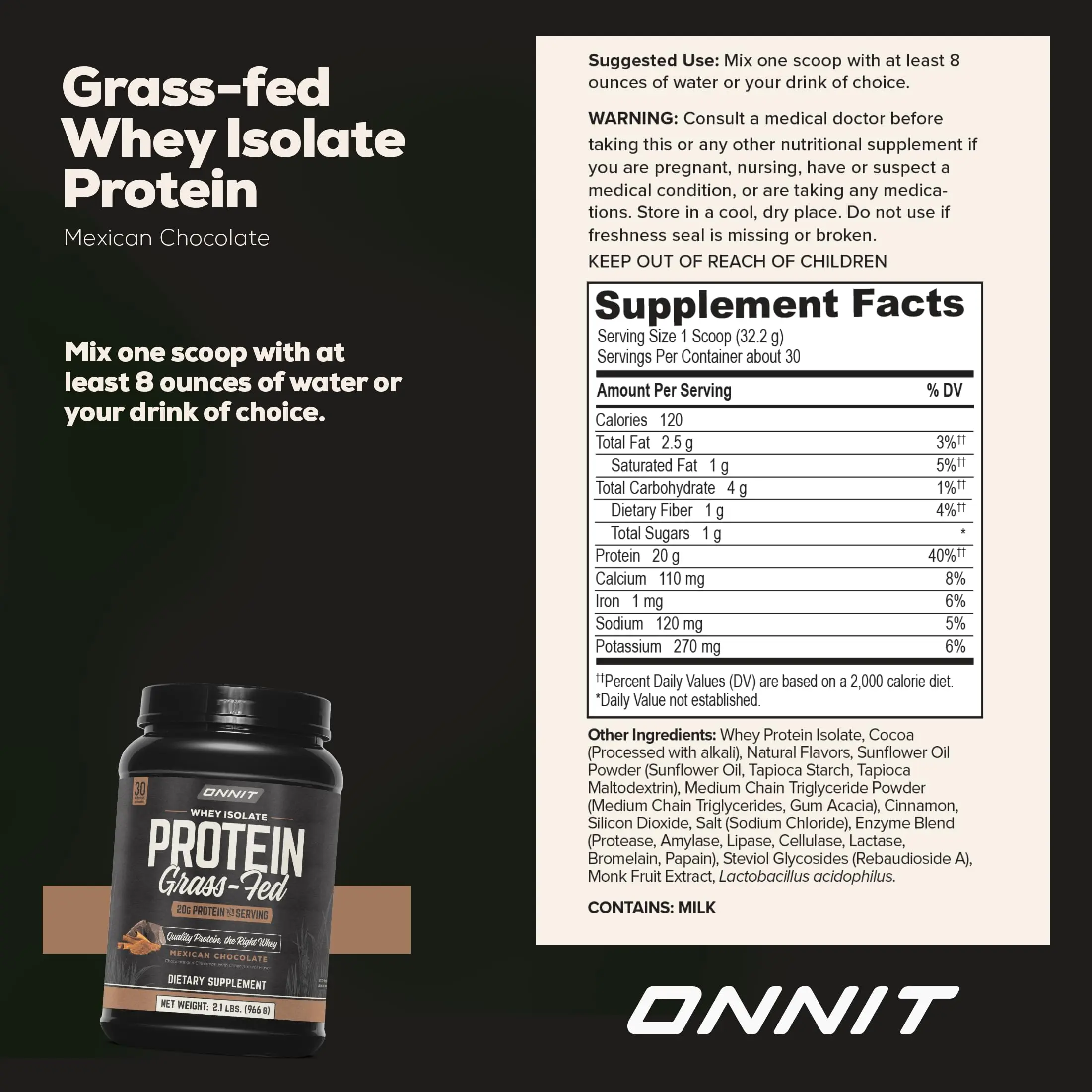 5. ONNIT Grass Fed Whey Isolate Protein - Mexican Chocolate (20 Servings)