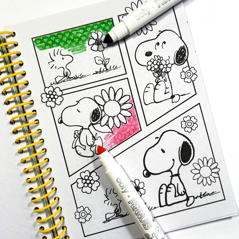 Perfect for travel, family craft time, or school projects, this Peanuts coloring activity kit is neatly packed in a portable Peanuts-themed carrying case that's colorable!