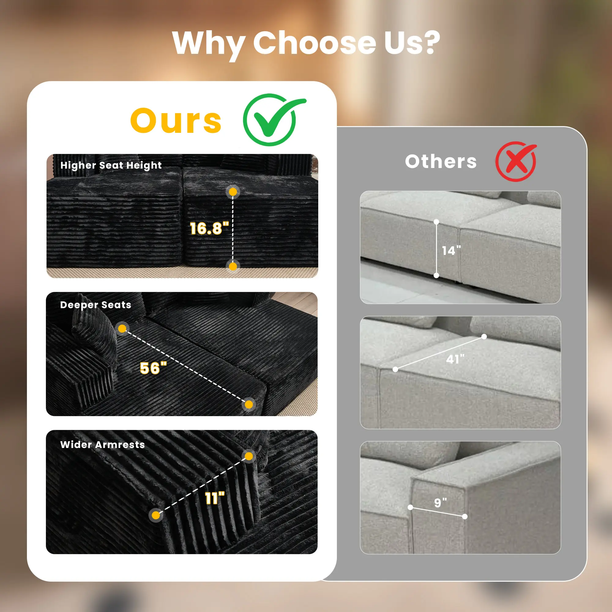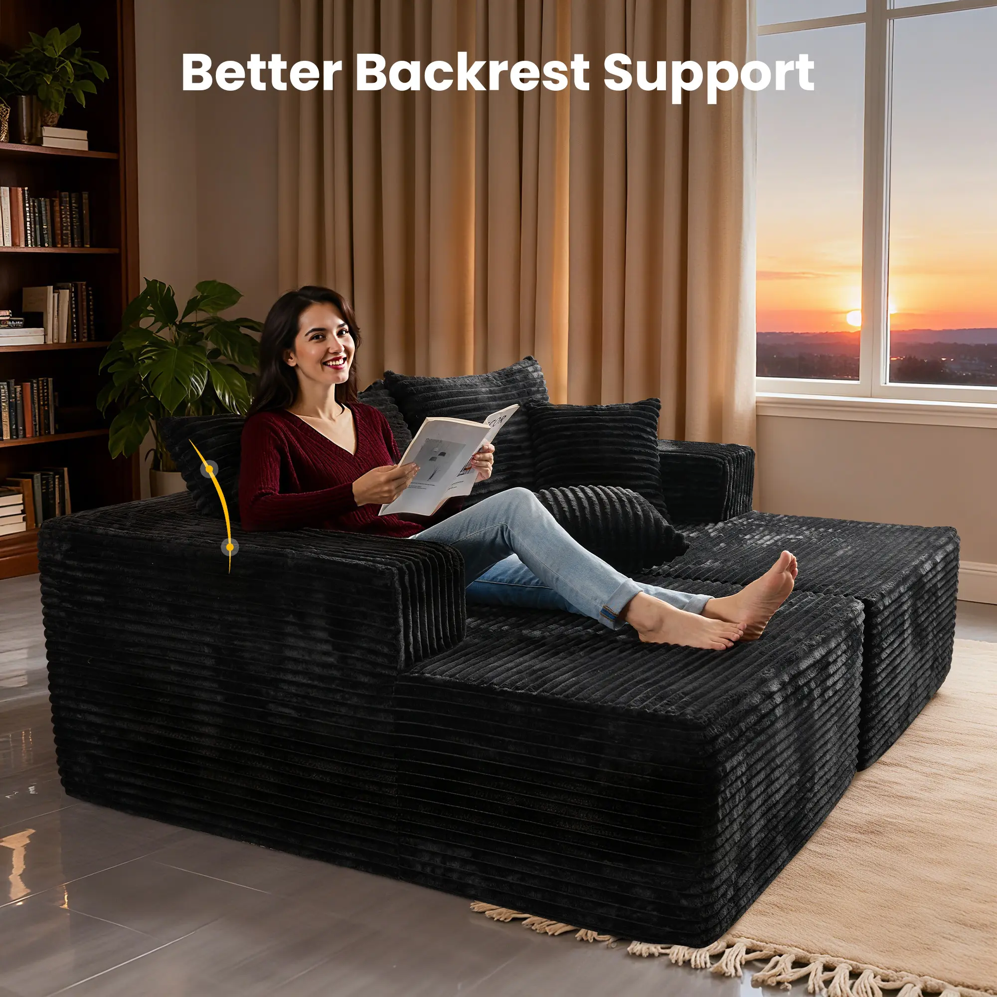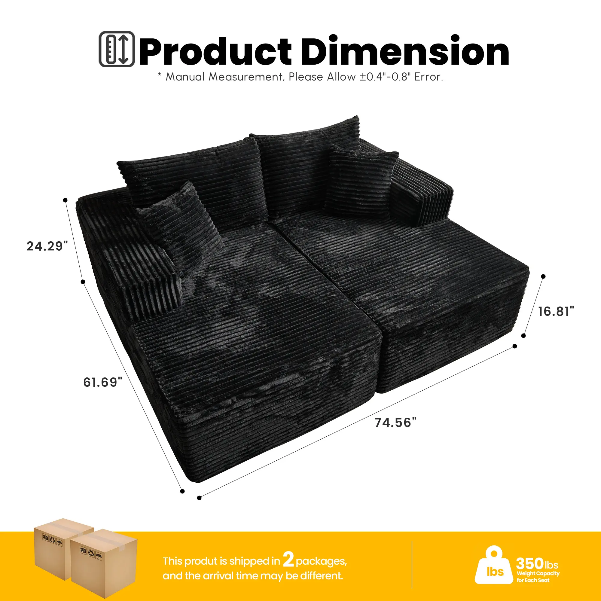 Double Chaise| Black Plush Corduroy