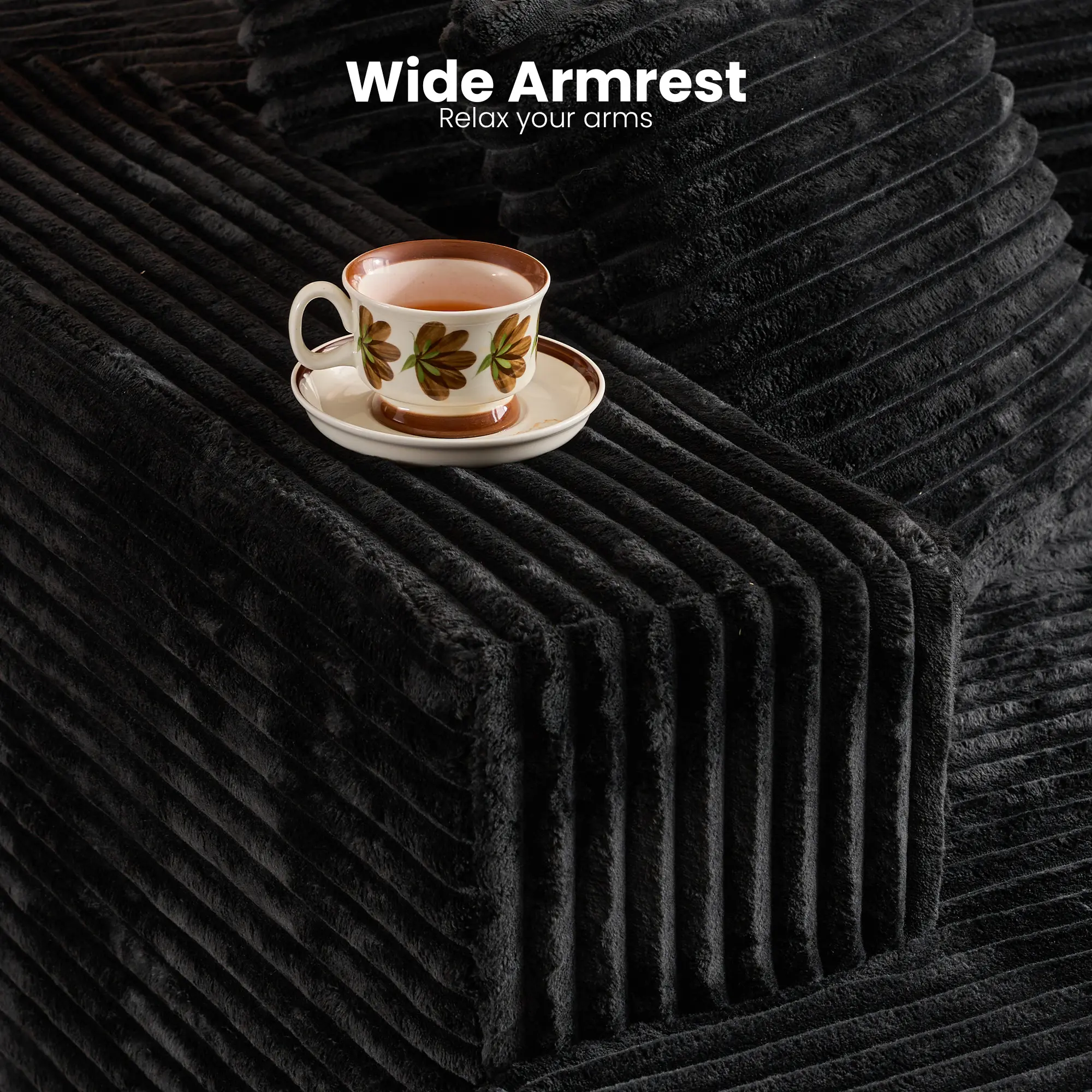Single Chaise|Black Plush Corduroy