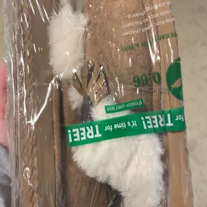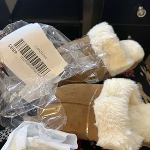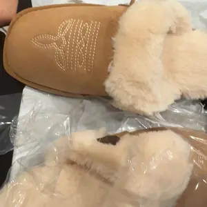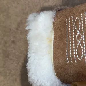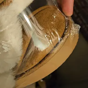 came really quick which i appreciate but i wish they came in a box because they were kinda squished 😭 and they have this weird yellow staining on the fur which i guess is the glue for the shoe??? :( idk but they are soft and cozy