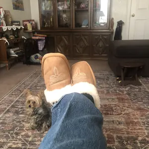 I absolutely love these shoes. This is my second pair I live in these every single day around my house. They are so cute their slippers that look like boots.