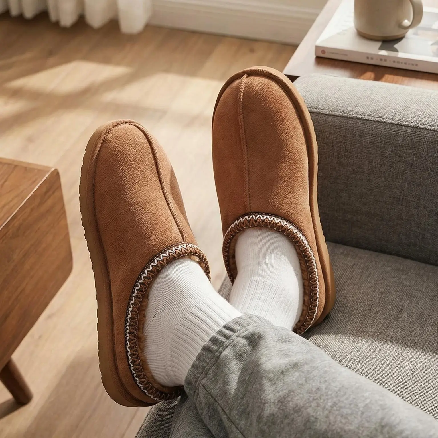 These slippers are perfect for keeping you warm and comfortable, whether you're at home or out and about.