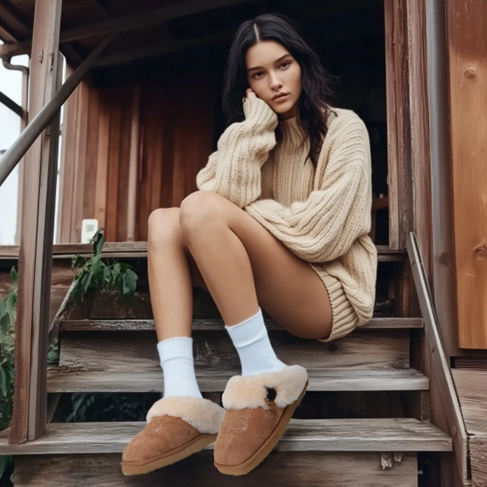 The OOW fuzzy slippers for women are equipped with a soft faux fur lining and a durable suede upper. This combination provides excellent warmth and comfort for cold winter days. You'll stay cozy and comfortable all day long.