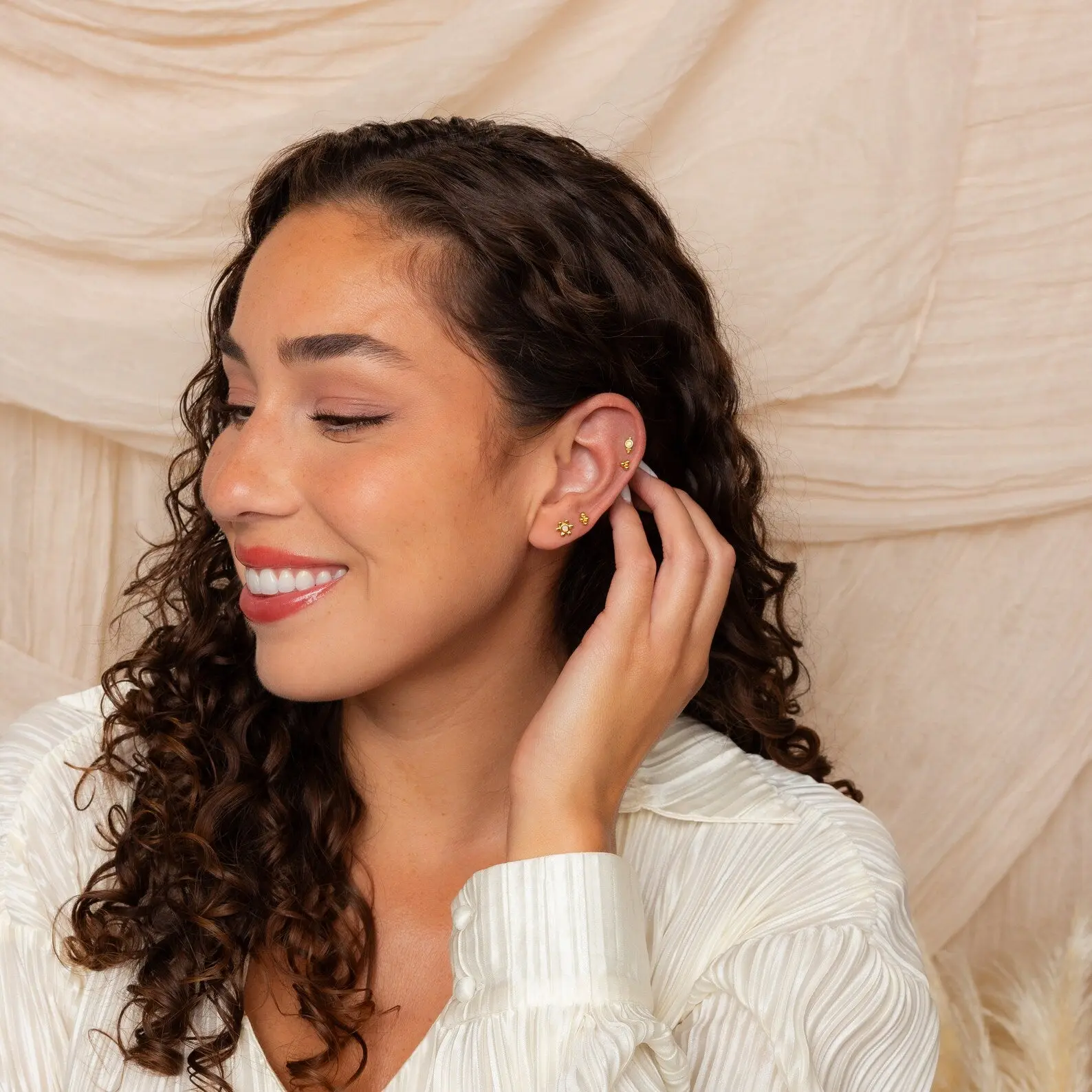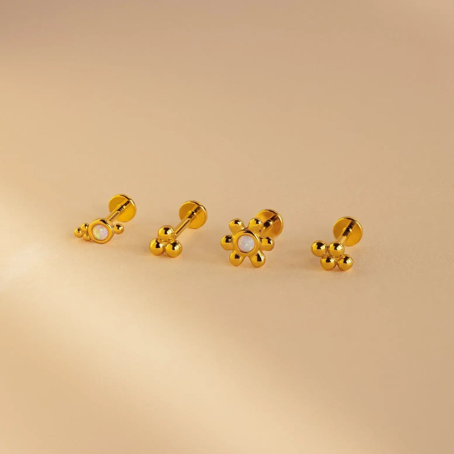 Discover our Opal Cluster Studs Set, a versatile and charming addition to any jewelry collection ♡ This set includes four single flat back stud earrings, each adorned with dainty sphere clusters, perfect for cartilage piercings and beyond. Whether you're treating yourself or searching for the best gift, these elegant earrings are sure to dazzle and delight!