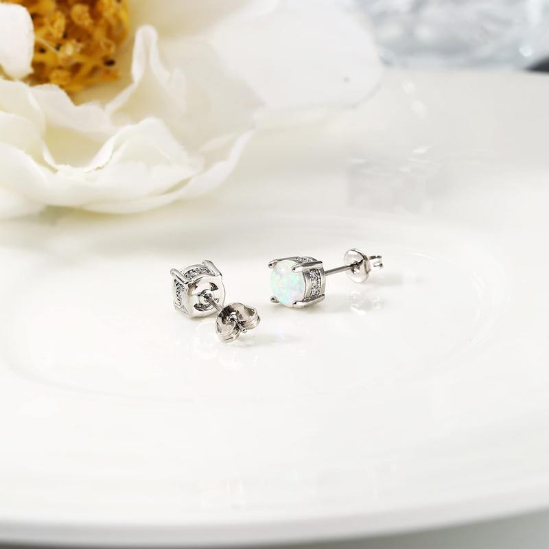 ·FINE MATERIAL - The Perfect Dose of Sparkle for All of Your Favorite Occasions! The Opal Stud Earrings Crafted in High Quality 316L Stainless Steel Post and Created Opal Stone, 18K White Gold Plated and High Polish Finishing, Nickel-free, Nickel-free, Lead-free, and Cadmium-free, Hypoallergenic for Sensitive Ears.