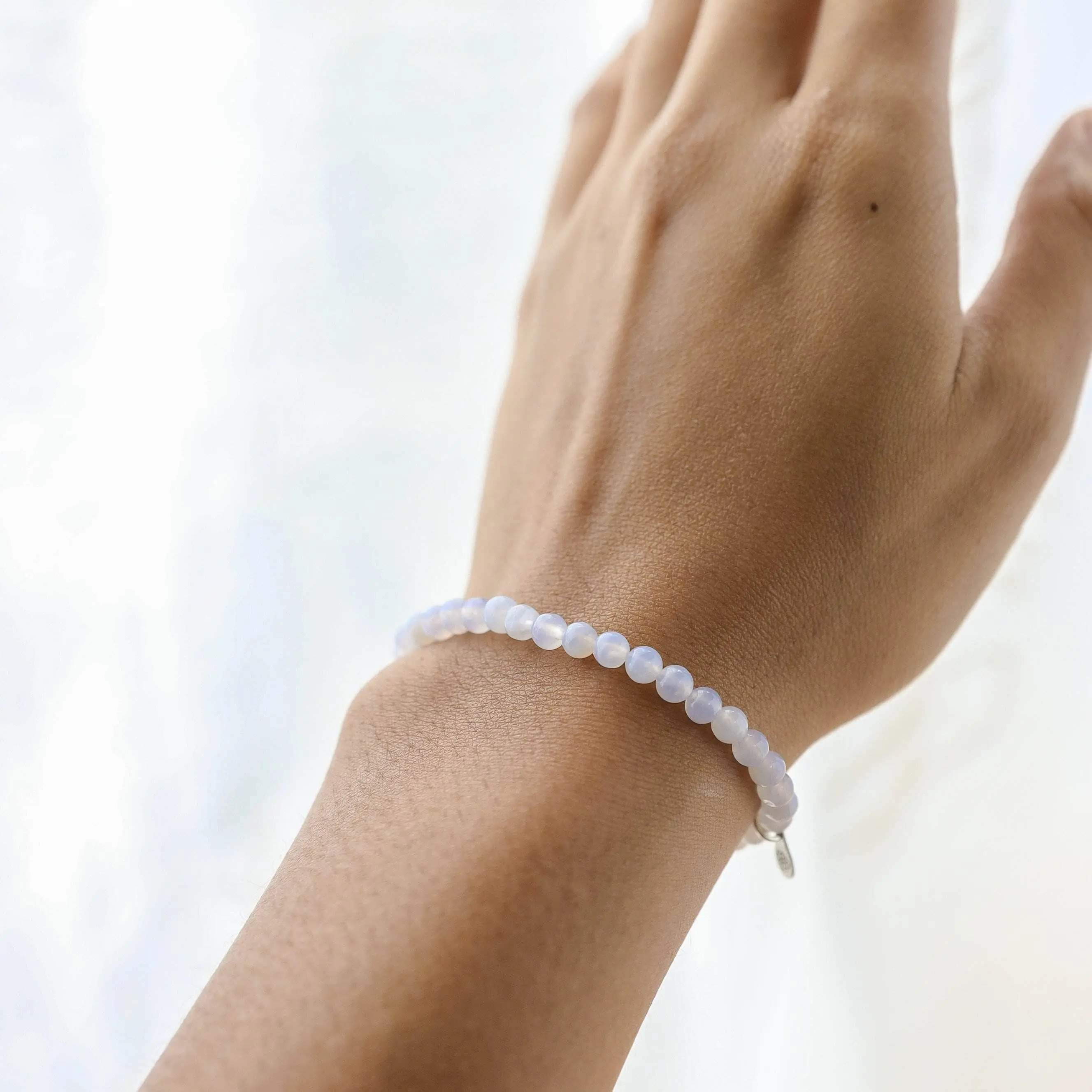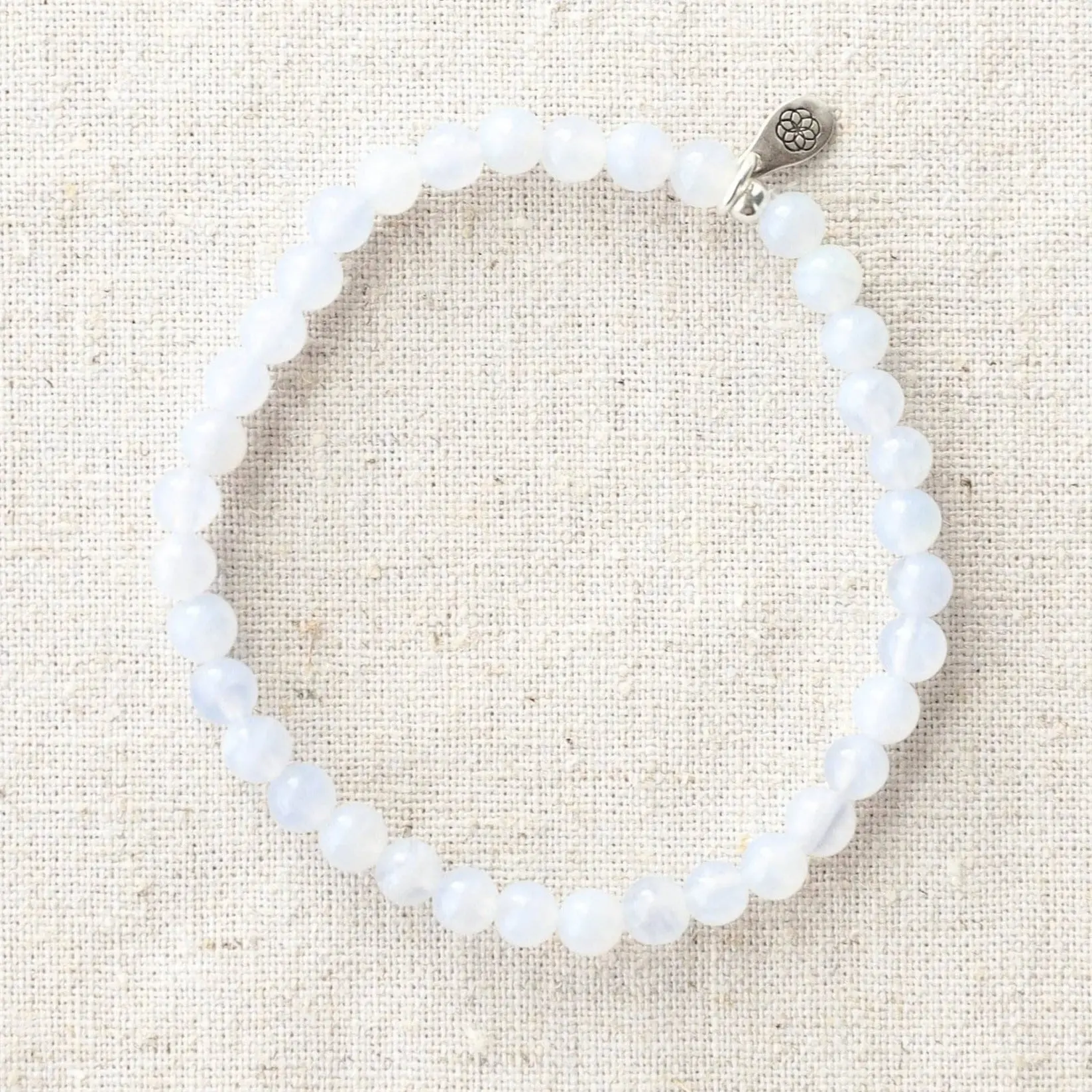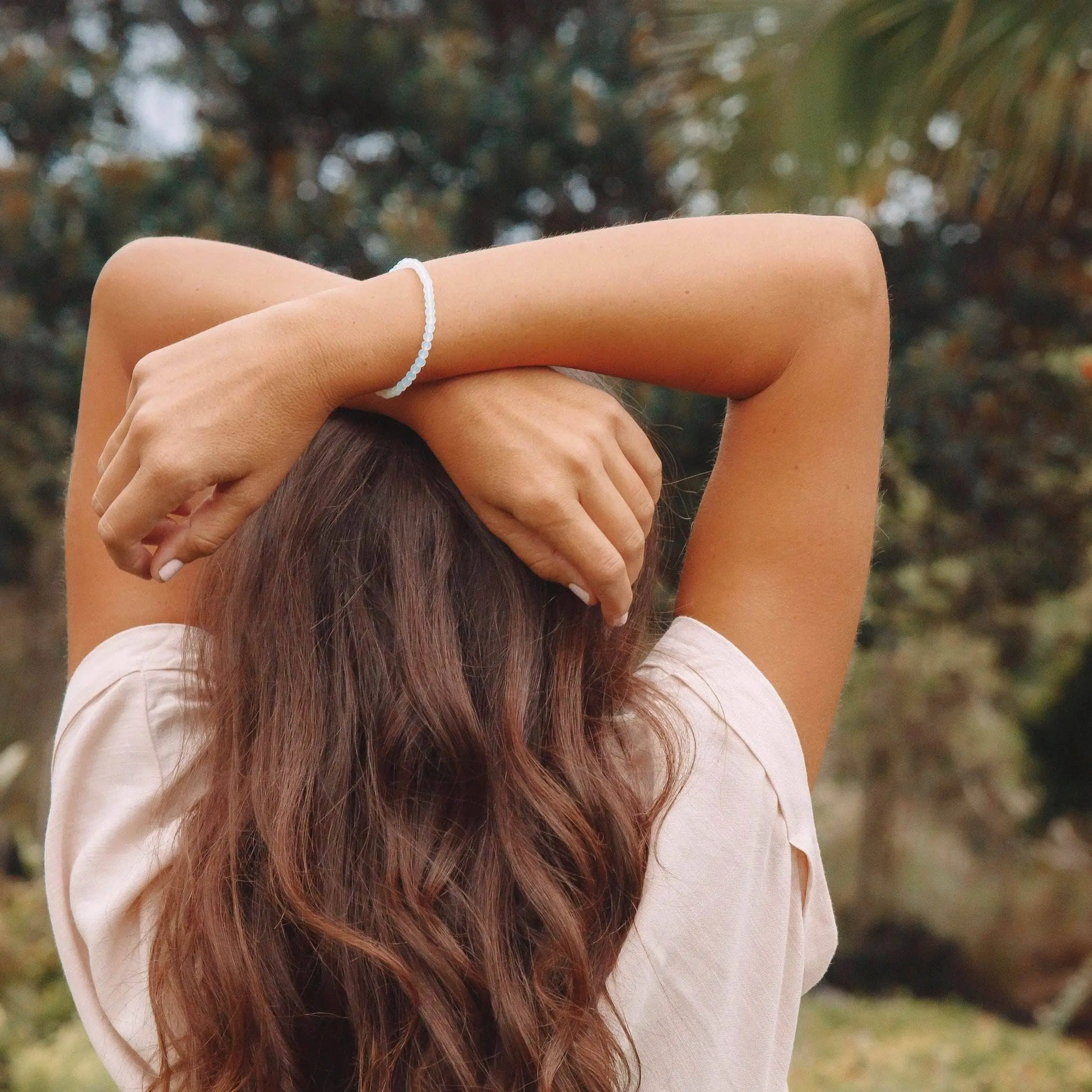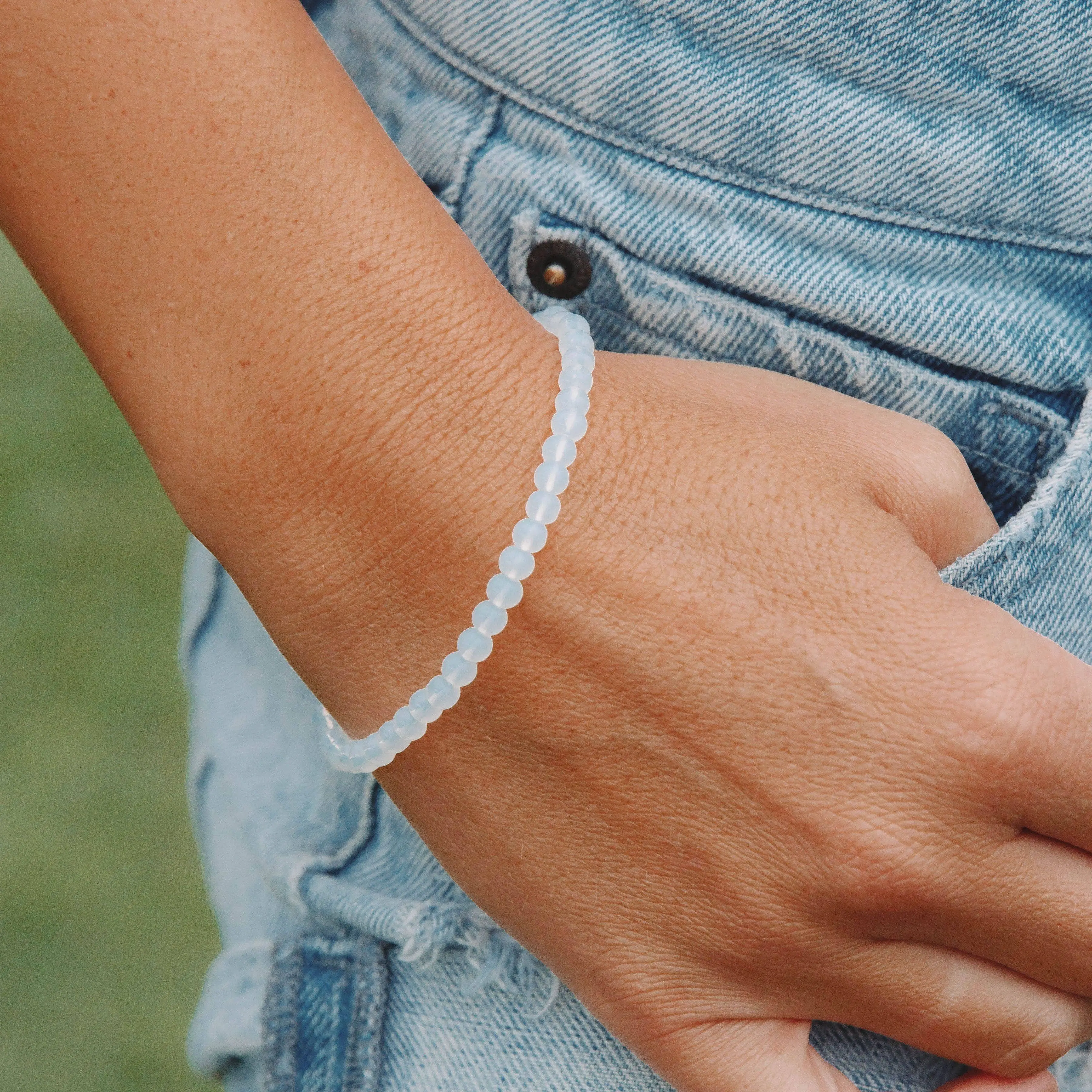Milky as the moon and set with a pearly sheen, this Opalite Energy Bracelet is an ideal companion for accessing higher plains of meditation. Connected with the third eye chakra, Opalite is a heavenly flame – flickering with the gentle promise of greater personal power, stimulated visions, and removing blockages from your body, mind and soul.