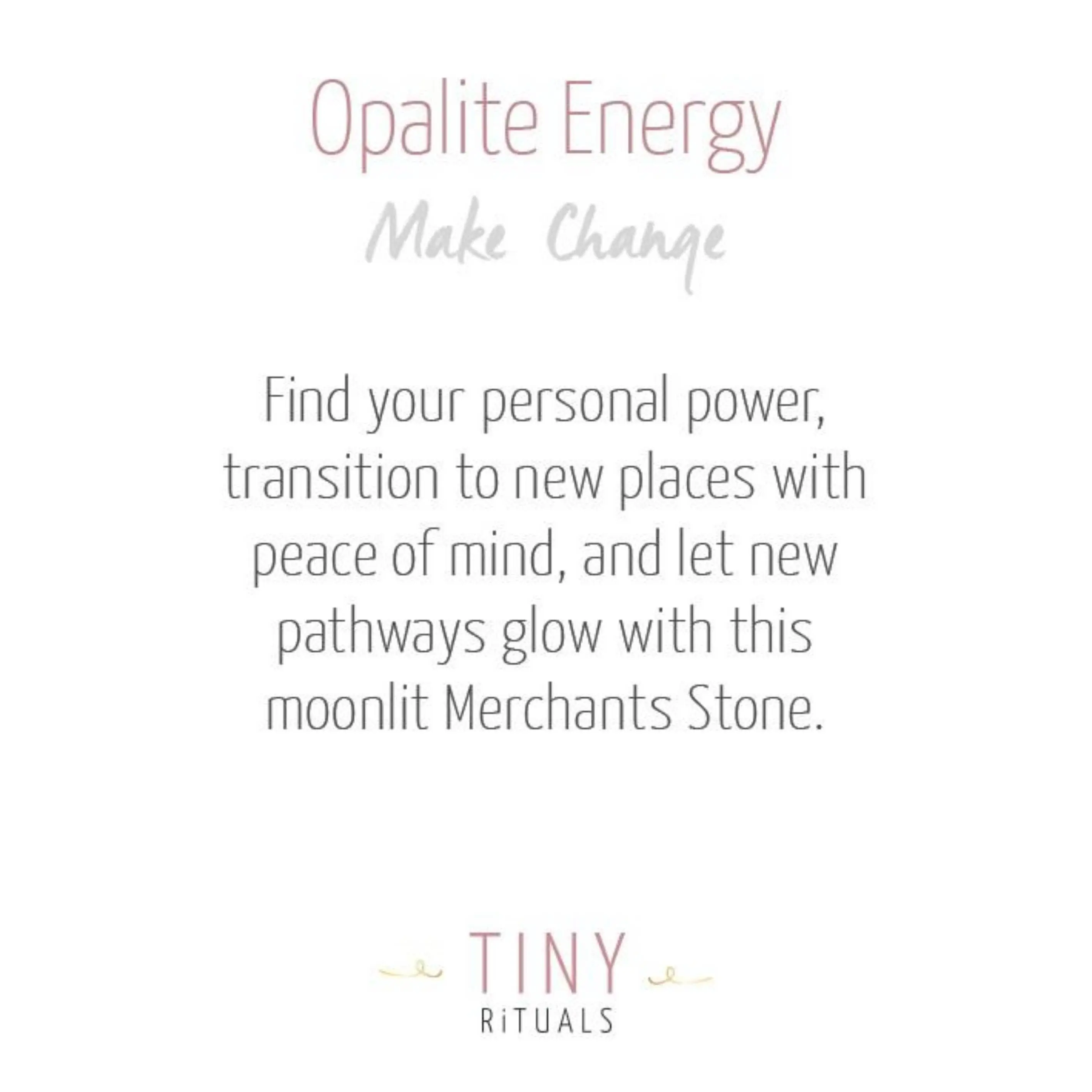 Like the moon passing through different phases, Opalite helps us greatly in times of transition. Bringing persistence and strength to times of change, Opalite shines a light on new pathways that will lead us to where we need to be. Opalite is ethereal in more than just appearance, the stone shimmers with strong psychic connections that can also help transmit messages from the universe.