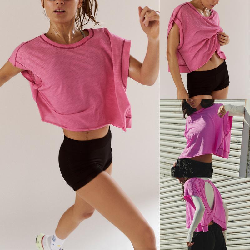 ·Occasion: Embrace comfort and style effortlessly. This short sleeve open back tops is perfect for going to or from a workout, this tee features a soft fabrication, slouchy crop and flattering back opening. Its adaptability blends seamlessly with your lifestyle.