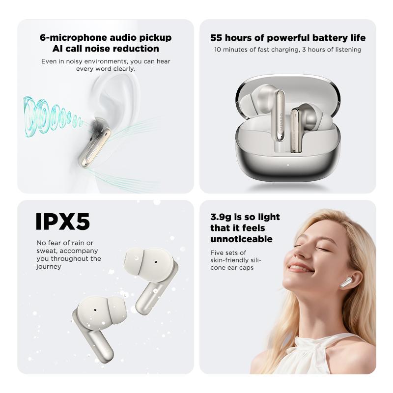 Ever wish your earbuds could keep you connected without blocking out the world? Meet the MINISO X30 OWS Open Ear Bluetooth Earbuds. Perfect for joggers, commuters, or anyone who likes to stay aware, these earbuds rest comfortably outside your ears with an ergonomic ear-hanging design. Rock your favorite tunes or take calls with crystal-clear HIFI sound and 6 built-in microphones that reduce background noise by 99.7%. Thanks to Bluetooth 6.0, pairing is quick and reliable, while the IPX5 waterproof rating means sweat or light rain won’t slow you down. Enjoy up to 8 hours on a single charge and a whopping 35 hours total with the handy charging case. Plus, a fast 10-minute charge gives you 3 hours of playback when you’re in a hurry. Customize your listening with touch controls and multiple scene modes like Commuter or Outdoor. Choose from three stylish colors to match your vibe. Inside the box, you’ll find the earbuds, charging case, USB cable, and user guide. Ready to upgrade your audio game with comfort and convenience? Grab your MINISO X30 earbuds today and enjoy music your way!