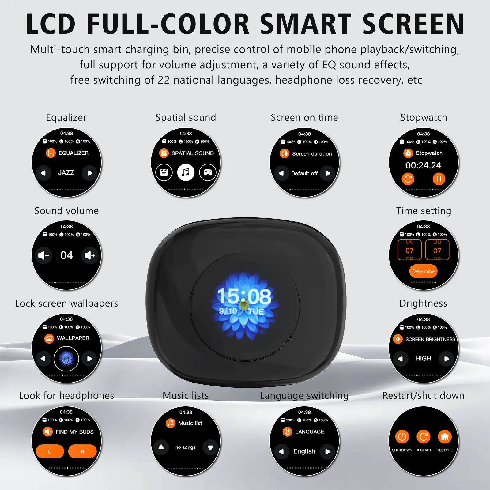 Ever wish you could enjoy your music and stay aware of your surroundings? These True Wireless Open Ear Earbuds are designed just for that! With an open-ear design, they keep your ears free while delivering immersive, high-fidelity sound. Whether you’re jogging, commuting, or working, the lightweight earbuds fit comfortably without the usual ear fatigue. Thanks to Bluetooth 5.4, connection is instant and stable, compatible with all your devices. The IPX5 waterproof rating means sweat or rain won’t slow you down. Plus, the smart LCD touch screen on the charging case lets you manage music, calls, and voice assistants with ease. Enjoy up to 8 hours of continuous playback and a total of 35 hours with the charging case—perfect for long days out. Inside the box, you get the earbuds, a stylish charging case with find-earbuds feature, and adjustable ear hooks for a secure fit. Ready to upgrade your audio game? Grab these earbuds and experience freedom, comfort, and premium sound wherever life takes you!