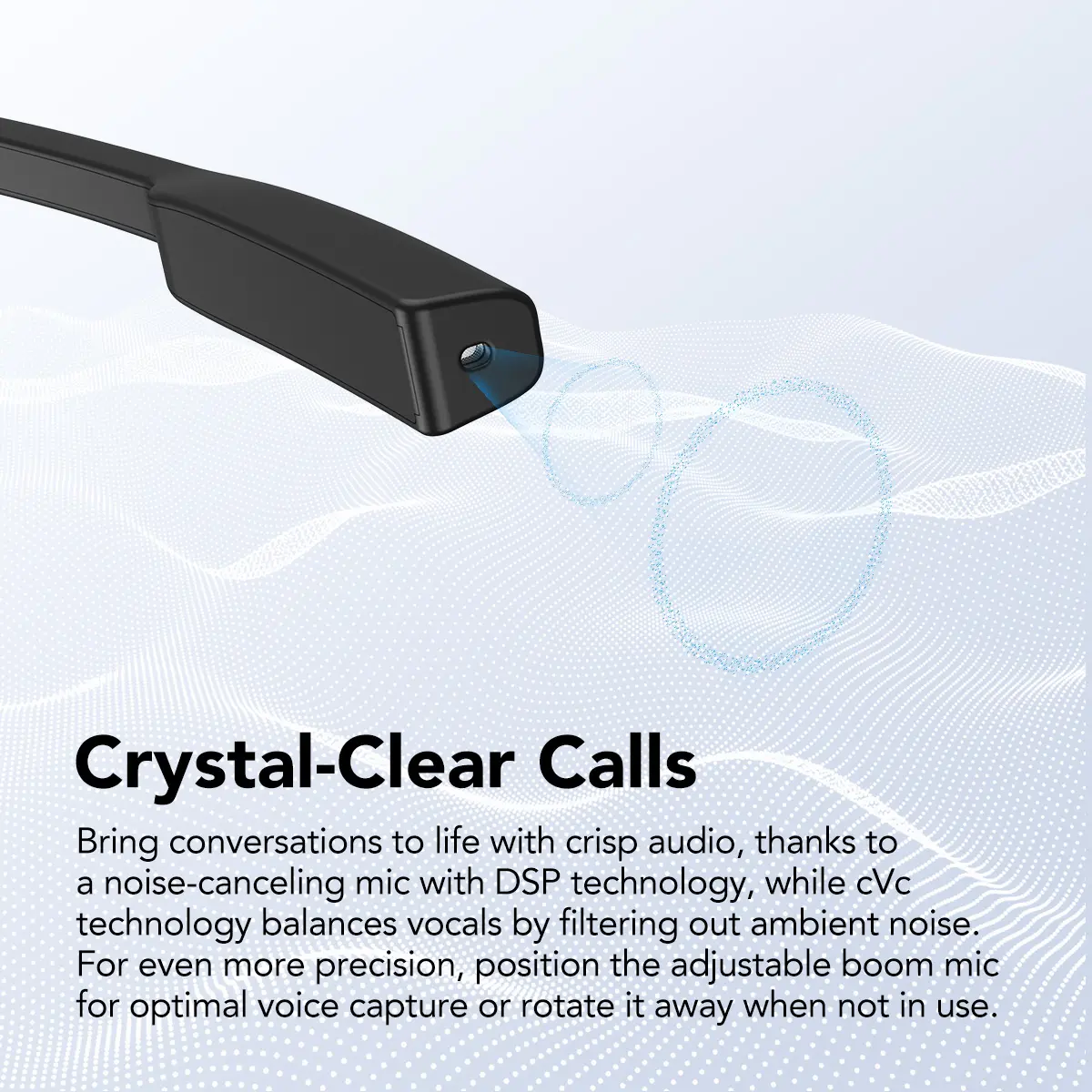 Tired of earbuds that hurt your ears or block out the world? Meet the MINISO Open Ear Air Conduction Headphones, designed for all-day comfort with their ultra-light, open-ear bone conduction tech. Whether you’re working from home, commuting, or on calls, these headphones let you stay connected to your surroundings without sacrificing sound quality. The DSP noise-canceling boom mic ensures your voice is crystal clear, while Bluetooth 5.4 offers a strong wireless connection up to 98 feet. Enjoy up to 16 hours of talk time and 8 hours of music playback, plus a quick 50-minute charge for when you’re in a hurry. Weighing only 35 grams, their flexible wraparound frame and soft silicone finish make them easy to wear all day long without discomfort. Inside the box, you’ll find the M85 headphones, a charging cable, and a user manual to get you started. Ready to experience sound that lives with you? Grab your pair and enjoy hands-free calls, music, and comfort wherever life takes you!