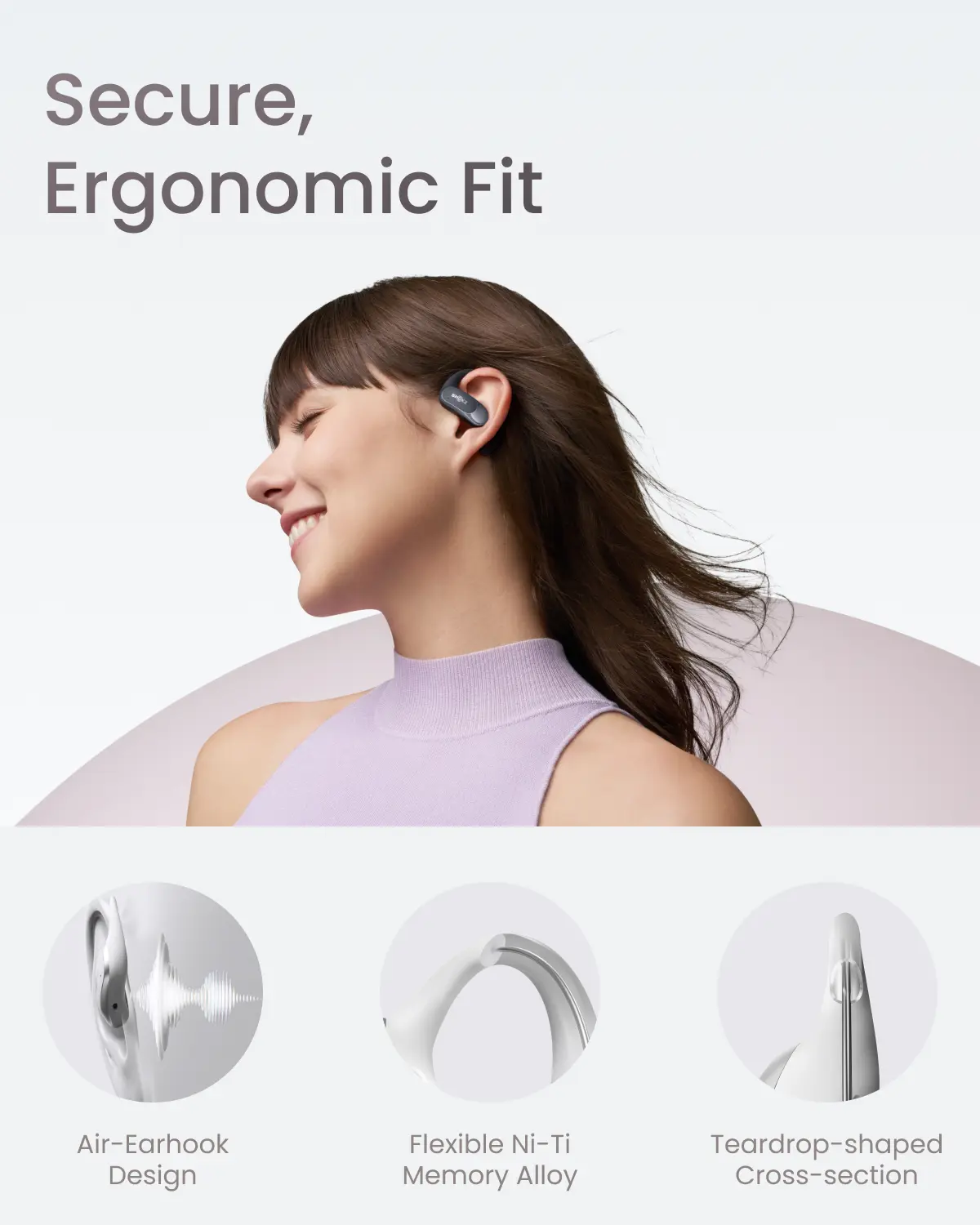 ·Engineered Fit - Designed for improved comfort with our signature open-ear concept and an adaptable earhook that weighs in at only 0.3 oz. These open-earbuds are built to remain securely in place.