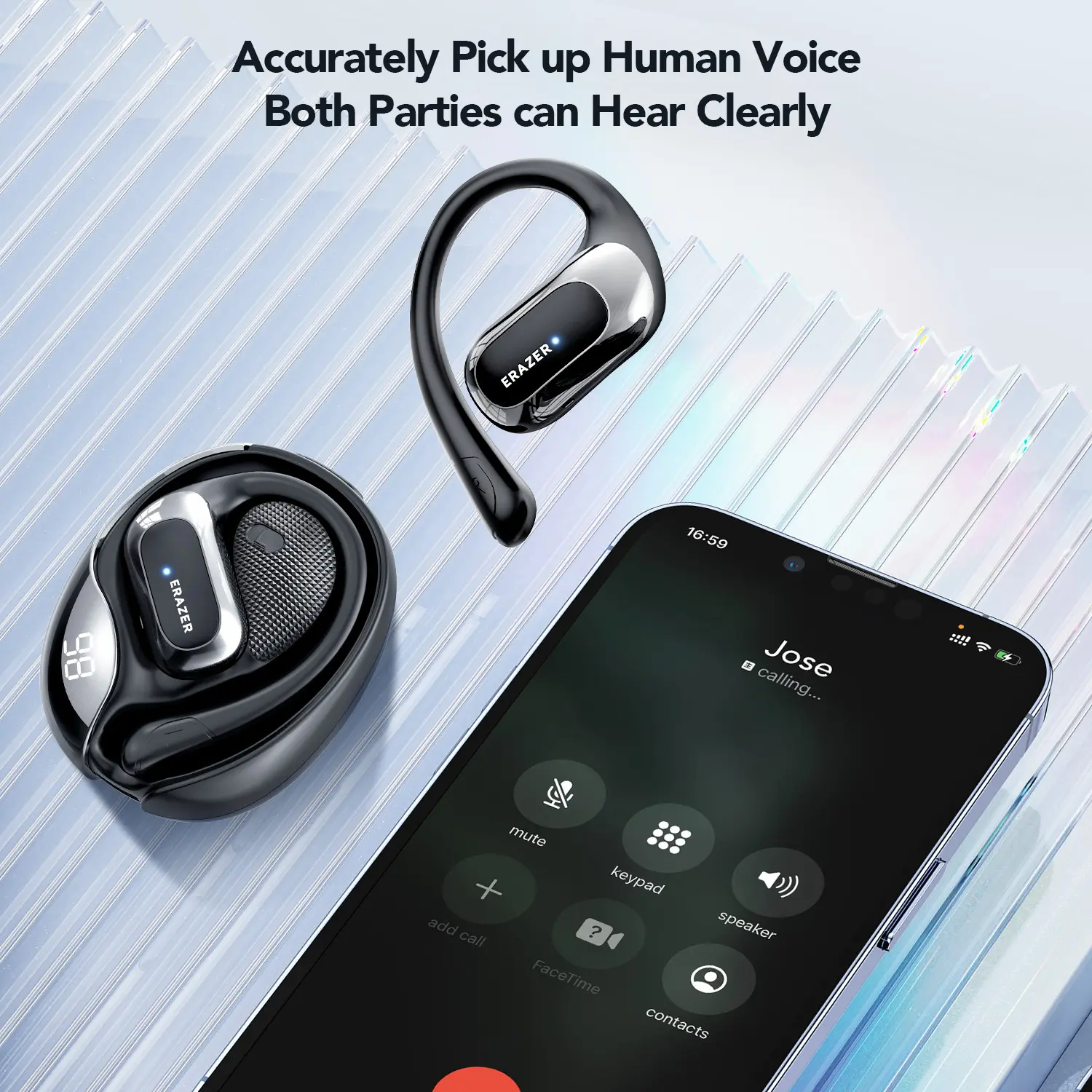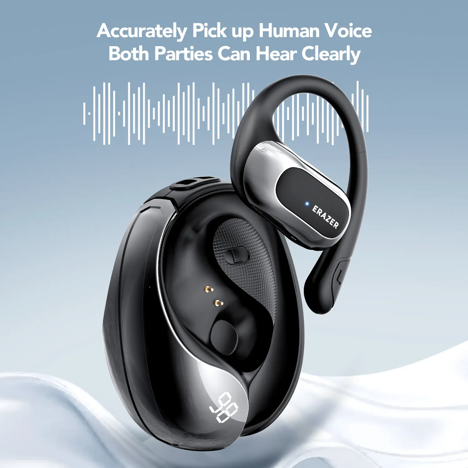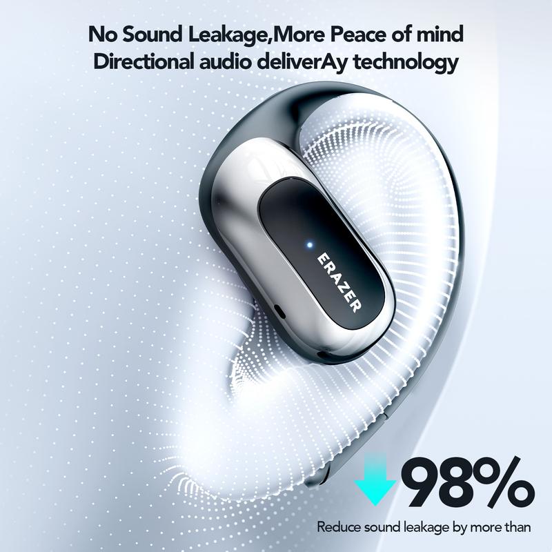 Tired of earbuds that block out your surroundings or fall out during workouts? Meet the ERAZER X5 OWS open-ear headphones with ergonomic ear hooks that stay put all day long. Whether you're gaming, taking calls, or jamming to your favorite tunes, the HD microphone and 14.2mm dynamic drivers deliver crisp sound and clear voice quality. Don't worry about sweat or rain—the waterproof design has you covered. The handy LED power digital display keeps you informed about battery life, so no surprises mid-play. With Bluetooth 5.4, you get lossless music transmission and super low latency, making these earbuds ideal for gaming or binge-listening. Plus, the 360° panoramic spatial surround sound and environmental noise cancellation keep your audio immersive and clear. Compatible with iOS, Android, and Windows devices, these wireless earbuds let you switch effortlessly between single and double ear use. The box includes the earbuds and a user manual to get you started. Ready to upgrade your audio game? Grab the ERAZER X5 OWS and enjoy wireless freedom with style and comfort!