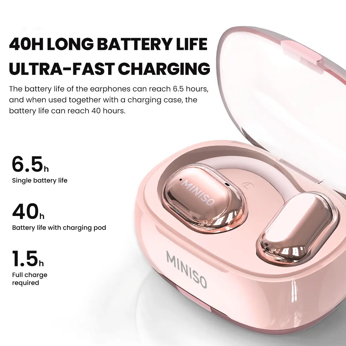 I bought the Miniso X39 because I kept getting migraines from regular airpods. I tried all different sizes & styles. Once I saw these it looked like it could be a blessing. They have been amazing! No more migraines, very light on your ears. Awesome sound quality, holds chara charge several hours.