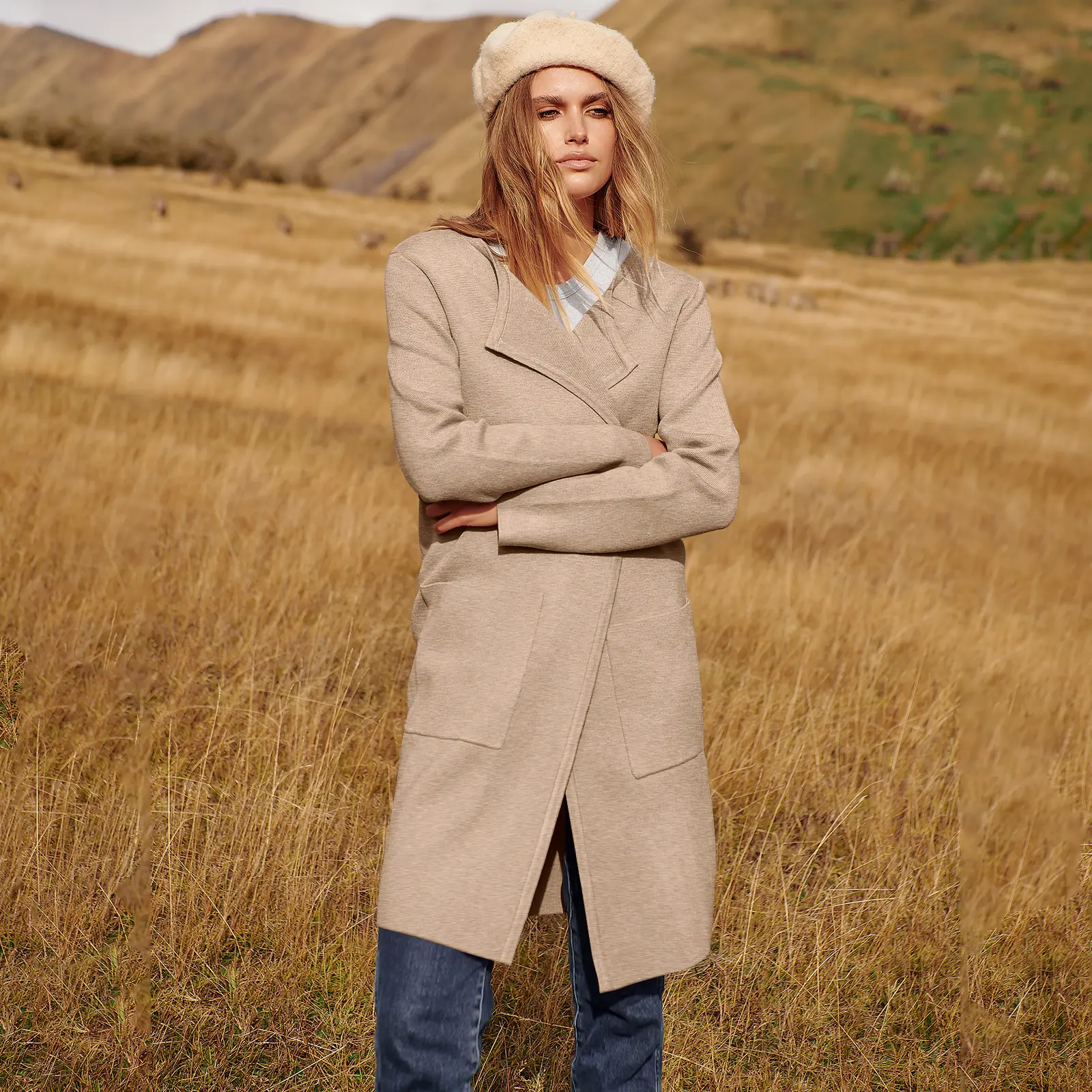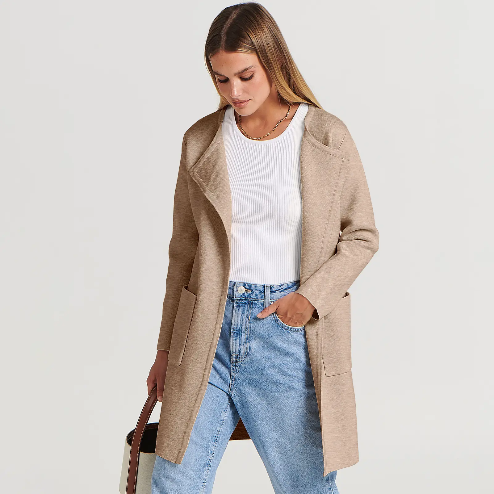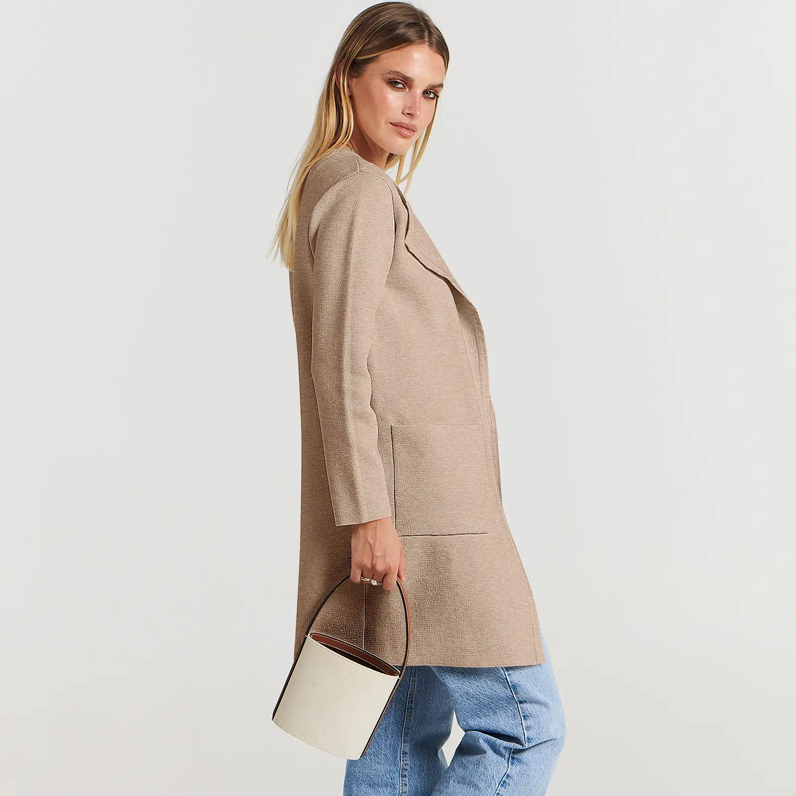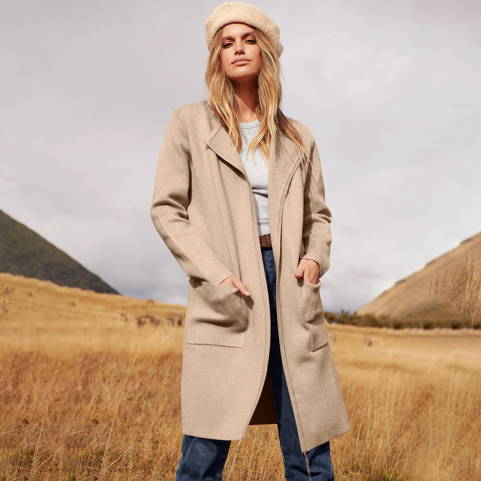 ·Features - Open front, With Pockets. Lapel Neckline. Knit fabric provides flexibility. Not lined. Hand wash / Do Not Bleach / Dry Flat / Do not iron.
