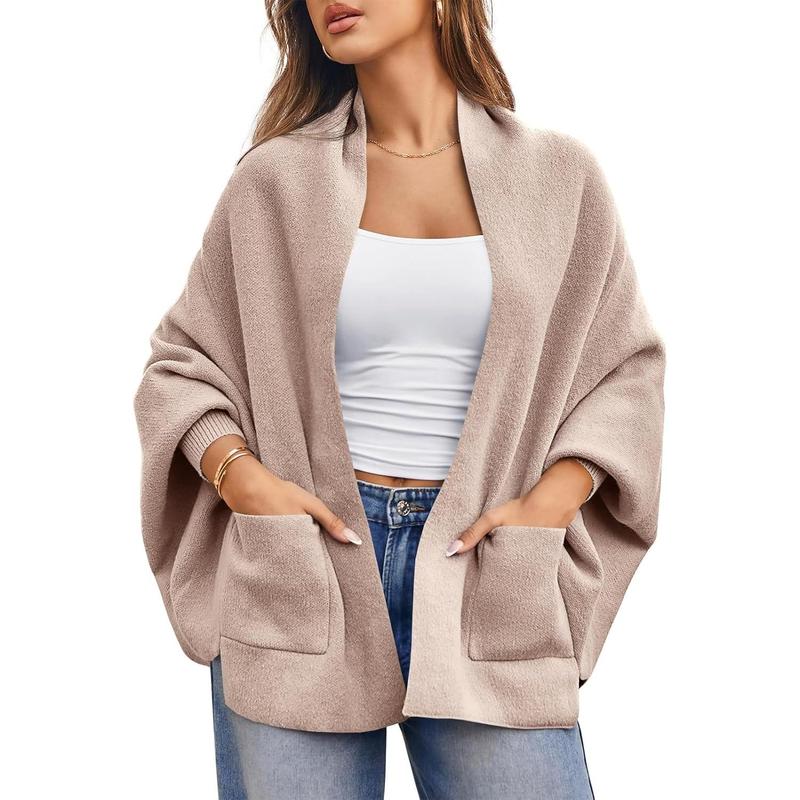 Womens Open Front Cardigan Batwing Long Sleeve Shawl Chunky Knit Loose Fall Poncho Sweater Coats