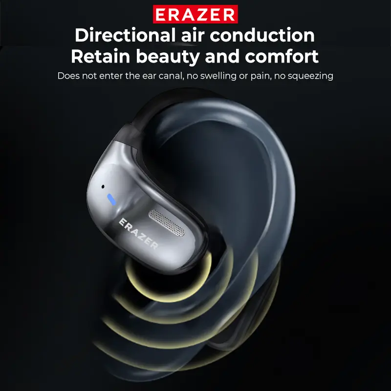 7. Open ear design,Ergonomic, comfortable and skin-friendly silicone material, one-piece molding, not easy to fall off during exercise, will not fall into the ears when worn, allowing you to stay fresh and worry-free at all times.