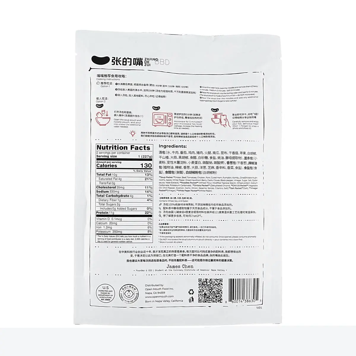 🍜 Craving a hearty and delicious meal? Our Open Mouth Tomato Beef Noodle Soup is your perfect solution! Made with generous, large chunks of premium US-sourced beef (over 50g per serving!), you'll savor every bite.