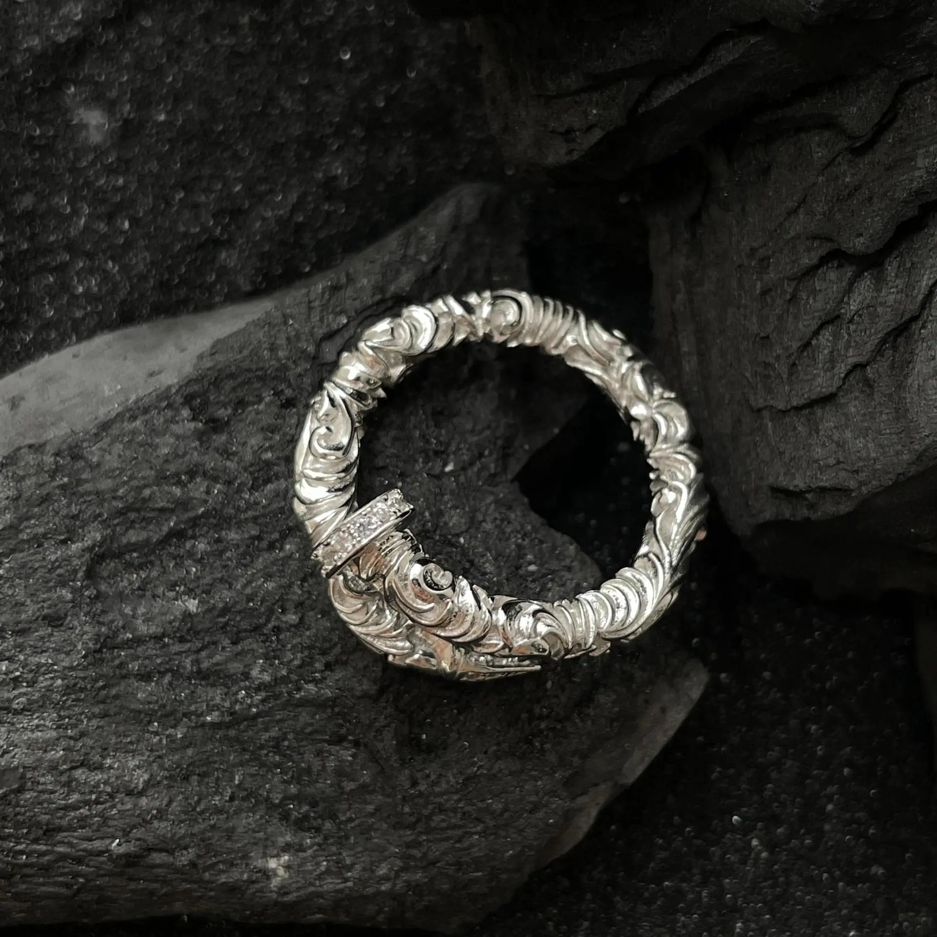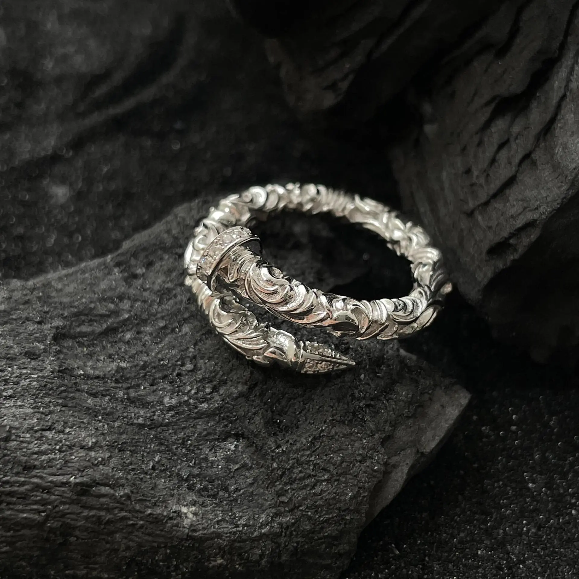 ·Intricate Embossing: The nail-inspired band is carefully embossed with arabesque patterns, giving it a unique texture and refined aesthetic.
