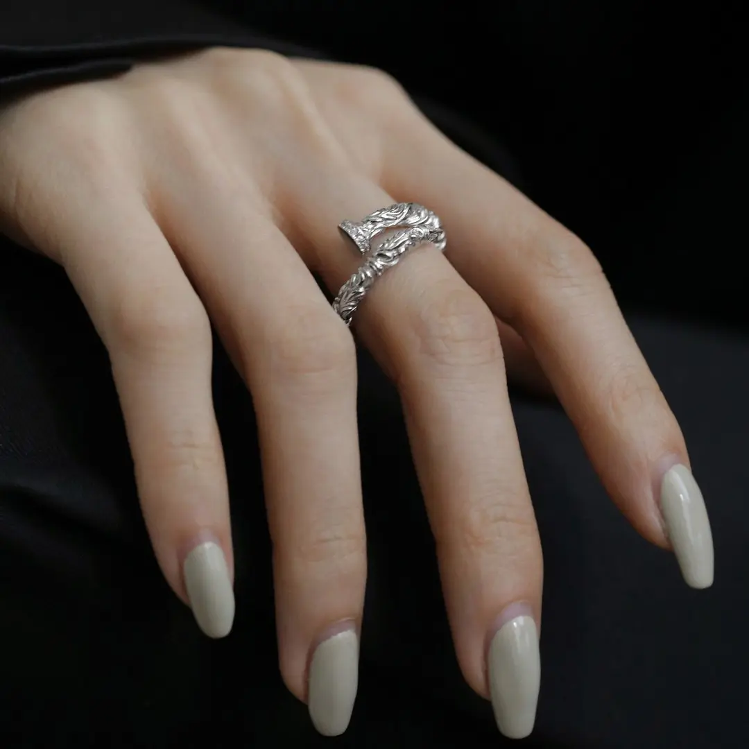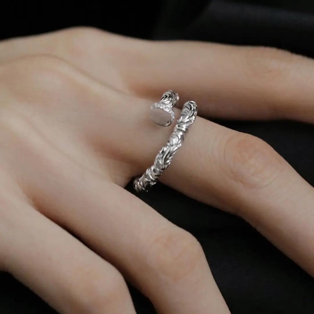 5. Embossed arabesque nail open ring, niche personality design, cool style, versatile ring, suitable for both men and women