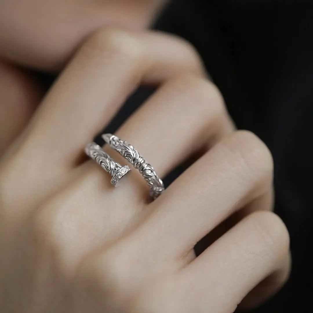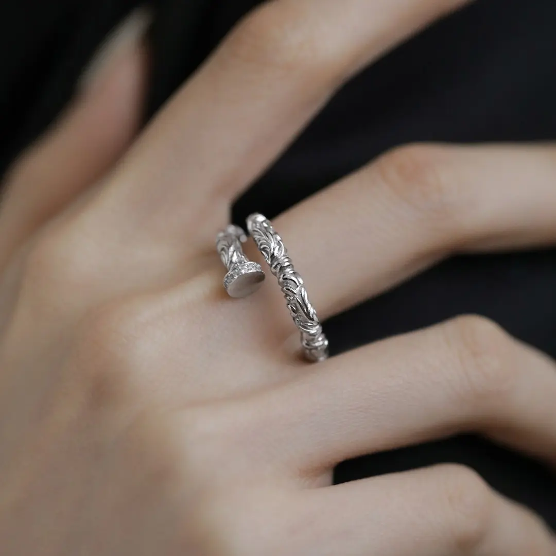 Embossed arabesque nail open ring, niche personality design, cool style, versatile ring, suitable for both men and women