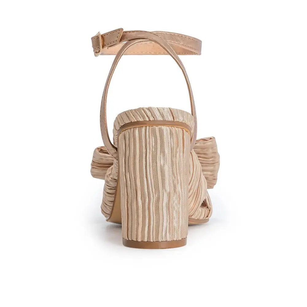 5. Athlefit Women's Open Toe Chunky Heels Pleated Bow Ankle Strap Heeled Sandals Wedding Bridal Shoes Footwear Girl Summer