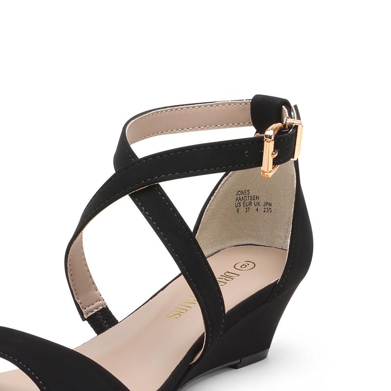 These criss-cross low wedge sandals are finished with a cushioned faux suede insole