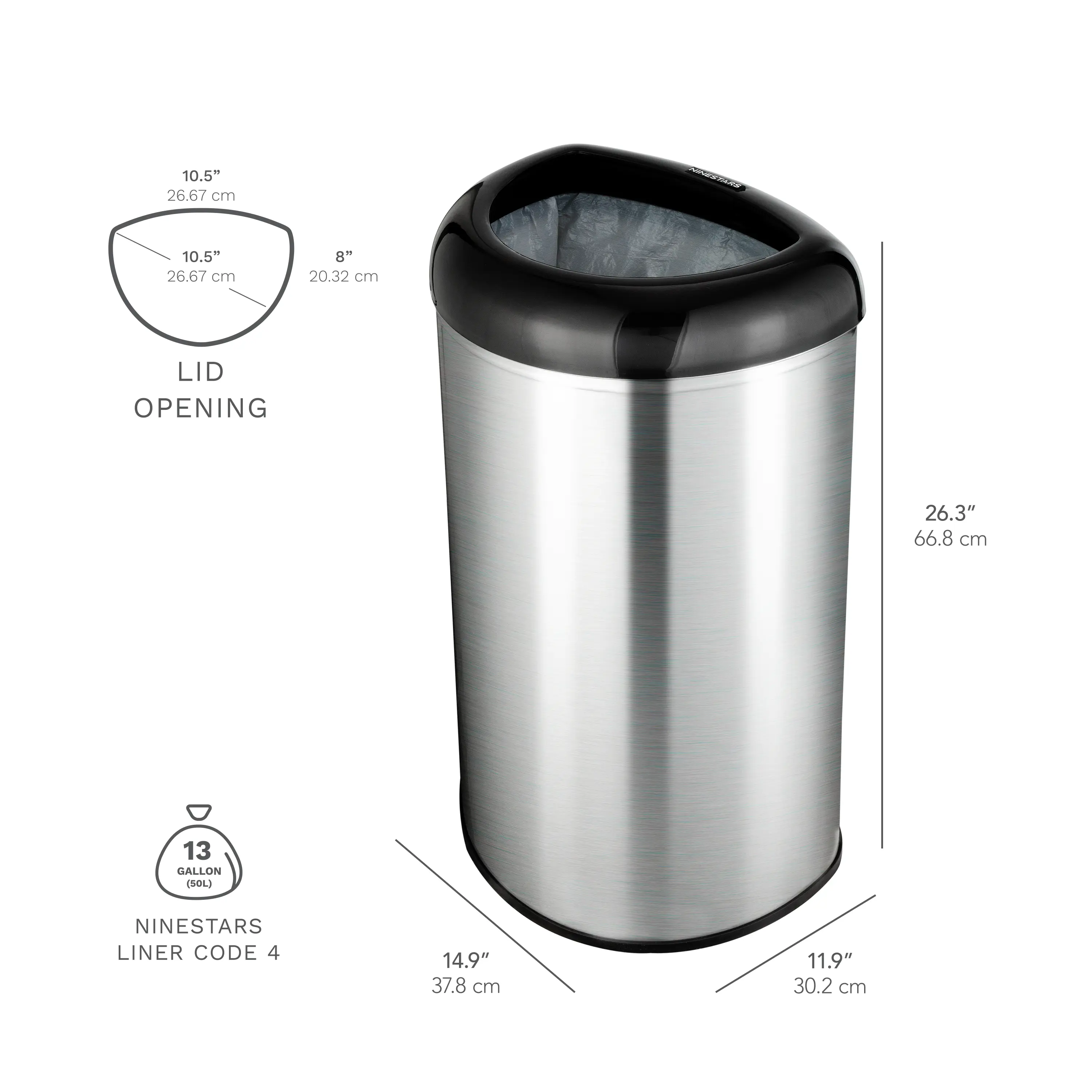·【Ease and Convenient】 Removable ring liner holds trash bag sturdy in place and prevents bag from overhanging for a neat and clean appearance. Use any standard trash bags or NINESTARS custom trash bags NSTB-13-30.