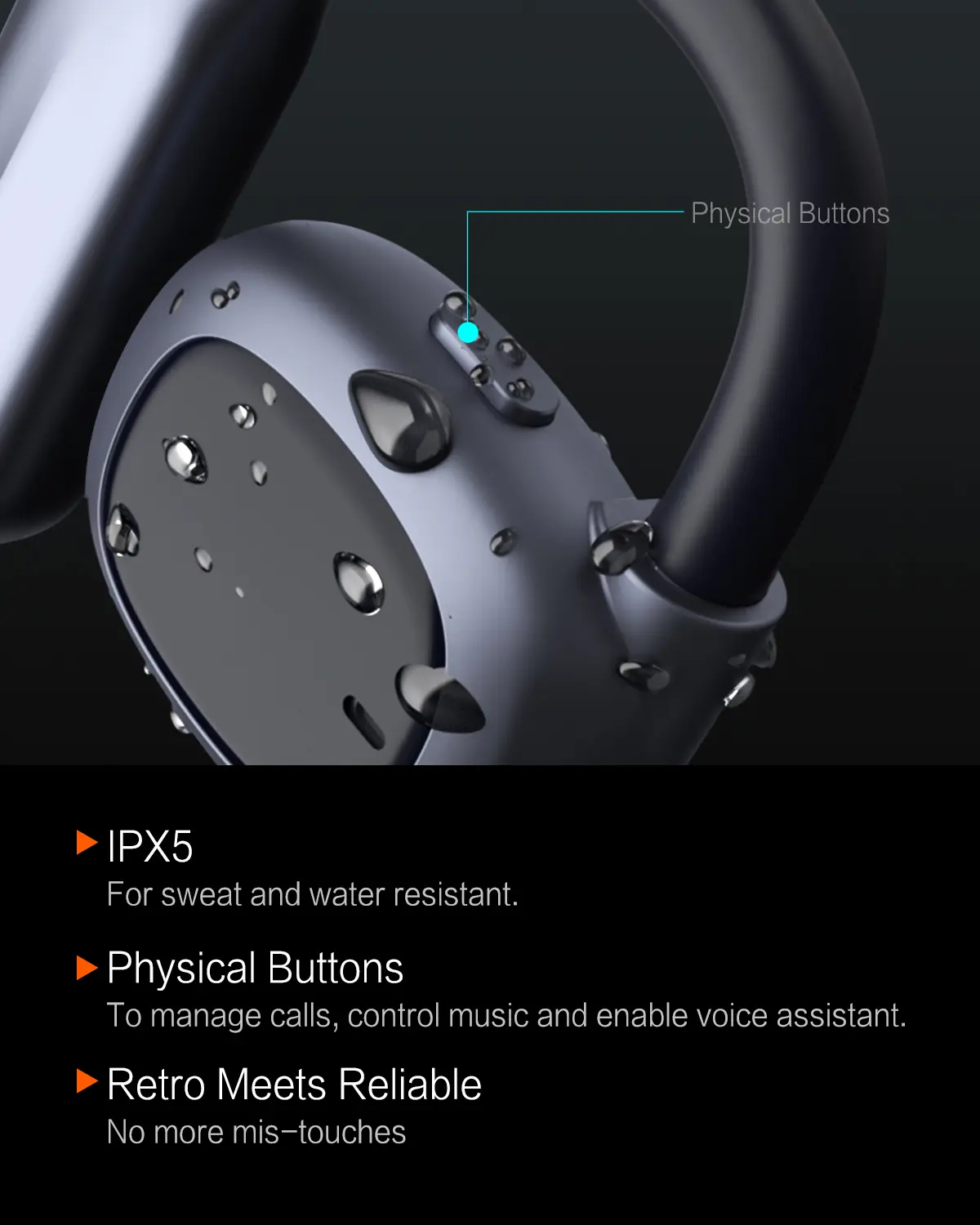 ·【Sweat It Out During Workout】The IPX5 rating shields your open ear headphones wireless bluetooth from sweat and splashes, so you can push harder every day. Always dry after use to keep them in top shape