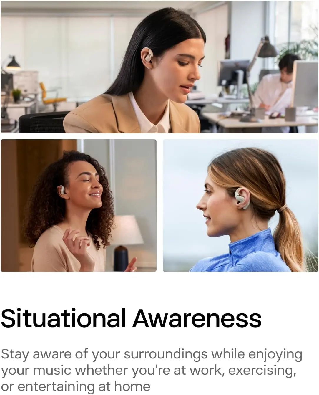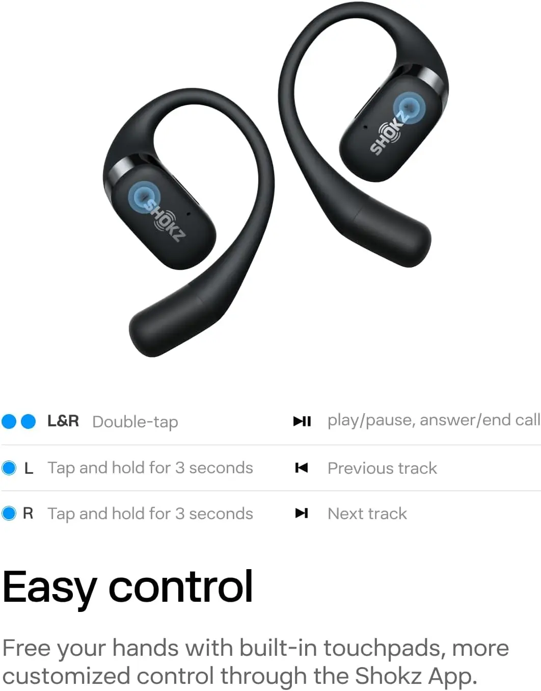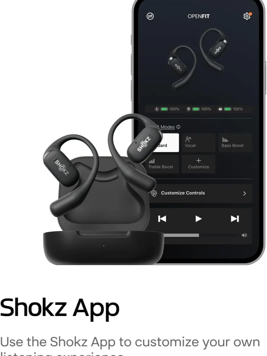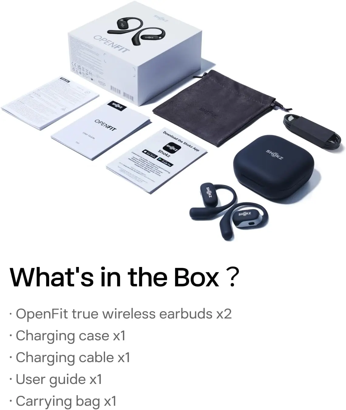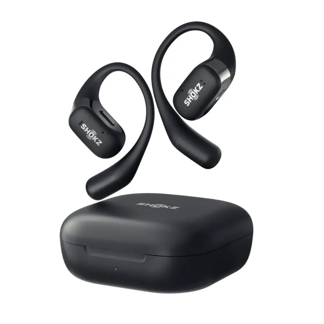 Ever wish your headphones let you stay aware of your surroundings while jamming to tunes? The SHOKZ OpenFit open-ear wireless headphones deliver just that with a comfy, lightweight design that keeps your ears free. Whether you're out for a run or working at your desk, the ultra-soft silicone cushions and ergonomic ear hooks provide a secure fit without pressure. Enjoy rich, concert-like sound thanks to DirectPitch™ and OpenBass™ technology, plus crystal-clear calls with AI noise cancellation that filters out 99.7% of background noise. With up to 28 hours of playtime and a quick 5-minute charge giving you an hour of listening, battery anxiety is a thing of the past. Connect easily to your iPhone, Android, laptop, or smartwatch via Bluetooth 5.2, and personalize your listening experience with the Shokz app. The package includes two earbuds, a handy charging case, carrying bag, USB-C charging cable, user guide, and app card—all in eco-friendly recycled packaging. Ready to enjoy wireless freedom without losing touch with your world? Grab your SHOKZ OpenFit today and experience audio that fits your active lifestyle.