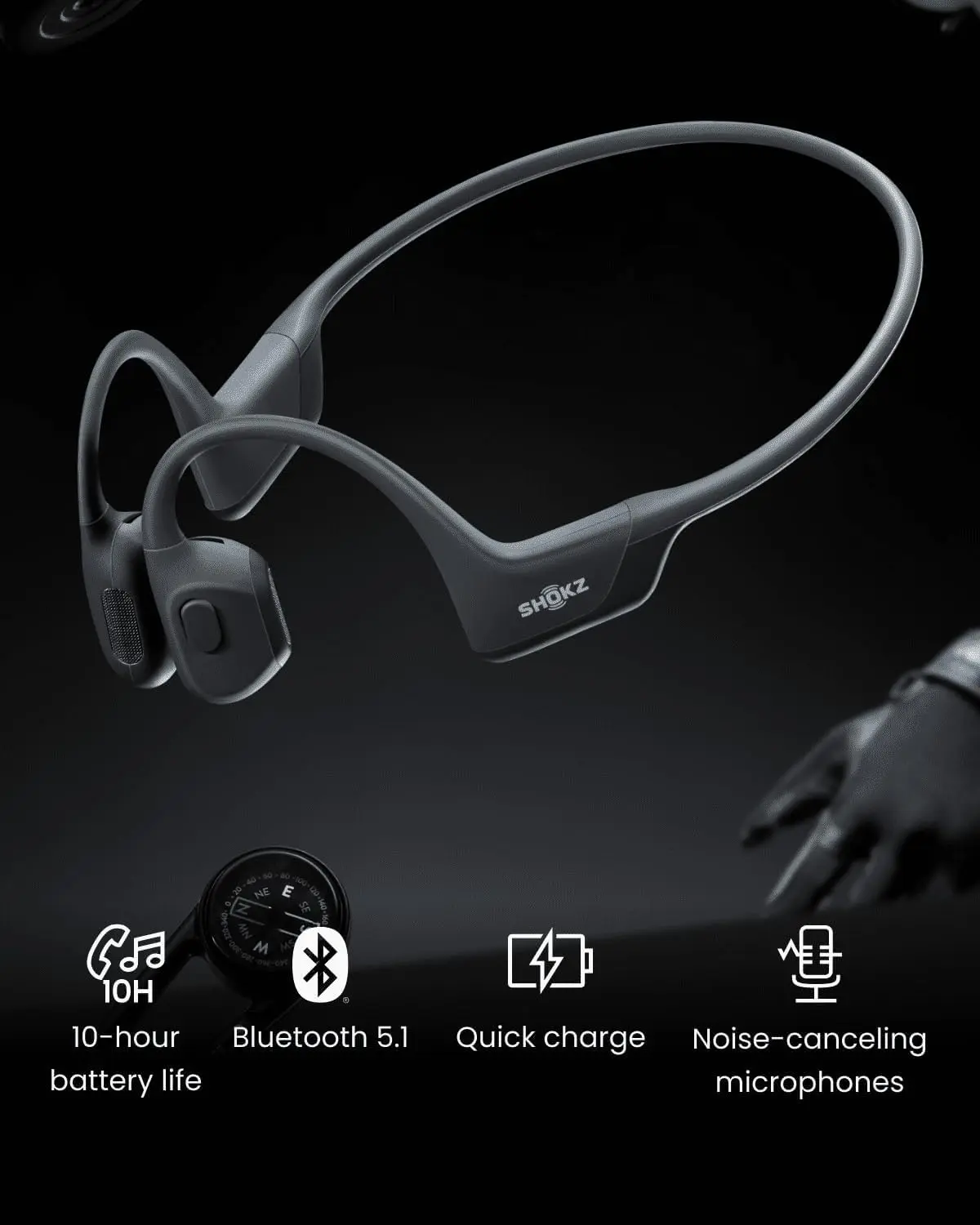 Tired of earbuds that hurt your ears or fall out mid-run? Meet the SHOKZ OpenRun Pro, your new workout buddy with an open-ear design that keeps your ears free and comfortable all day. Using 9th generation bone conduction technology, these headphones send crystal-clear sound through your cheekbones, so you hear your music and the world around you. Thanks to TurboPitch tech and dual bass enhancers, every beat and bass drop feels rich and powerful. Whether you’re hitting the gym or the trails, the sweat-resistant build keeps up with your toughest sessions. Plus, with 10 hours of battery life and a quick 5-minute charge for an extra 1.5 hours, you’re covered for long days. The package includes the OpenRun Pro headphones, a magnetic charging cable, and a convenient carrying case to keep your gear safe. Ready to upgrade your workout sound experience? Grab your pair and feel the difference with SHOKZ OpenRun Pro!