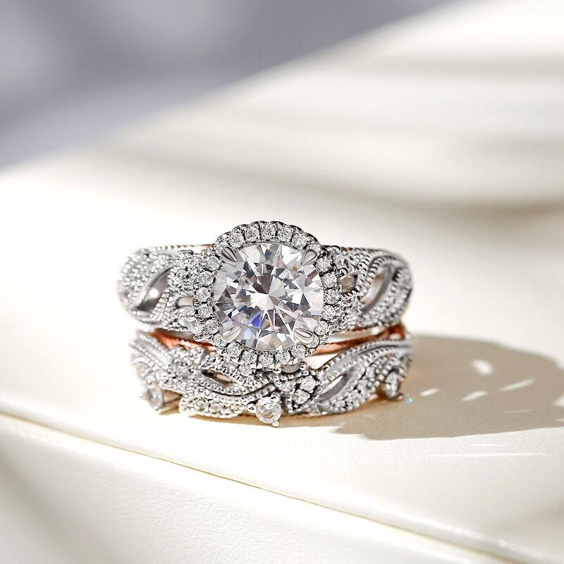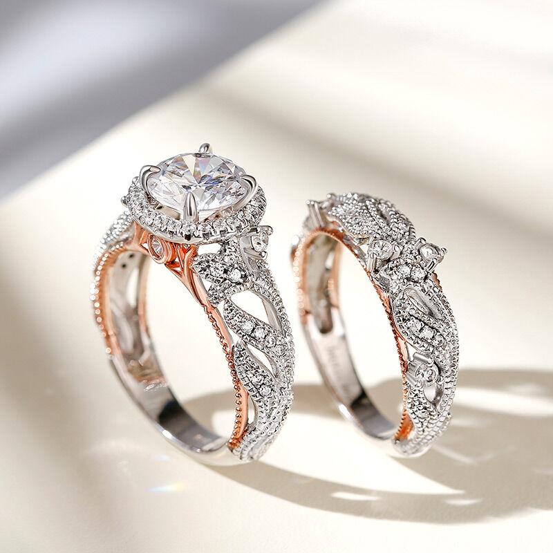 Material Quality: The rose golden plated wedding set with Top quality AAA Jeulia stone go well with 925 sterling silver rings. Have a resplendent sparkling and reflect rainbow gloss in the sunshine. Nickel-free, Lead-free, Cadmium-free and Allergic, tarnish resistant and will not easily change color.