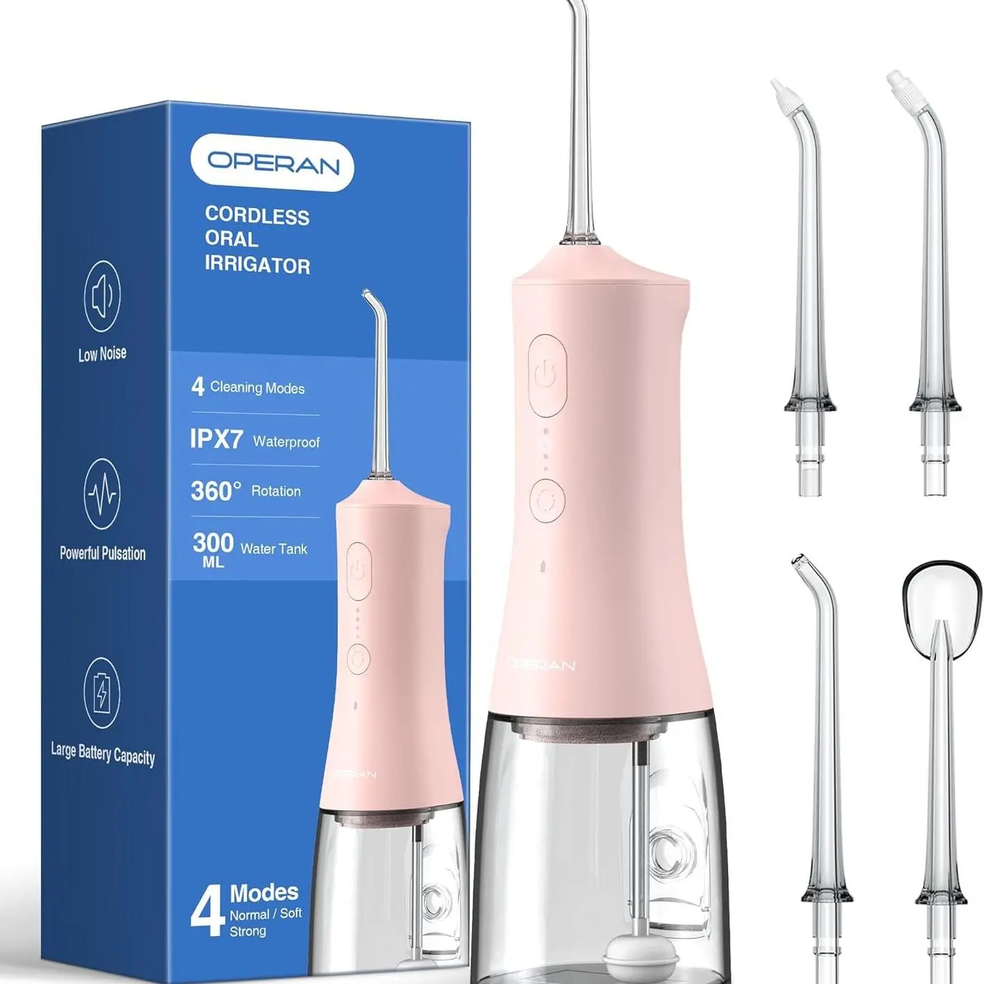 Operan 869 Portable Rechargeable Water Flosser & Oral Irrigator, 300ML IPX7 Waterproof 360°, Rotating Tips 4 Modes Cordless Oral Irrigator for Home Travel Gift Electric Teeth CleanerOperan 869 Portable Rechargeable Water Flosser & Oral Irrigator, 300ML IPX7 Waterproof 360°, Rotating Tips 4 Modes Cordless Oral Irrigator for Home Travel Gift Electric Teeth CleanerOperan 869 Portable Rechargeable Water Flosser & Oral Irrigator, 300ML IPX7 Waterproof 360°, Rotating Tips 4 Modes Cordless Oral Irrigator for Home Travel Gift Electric Teeth Cleaner