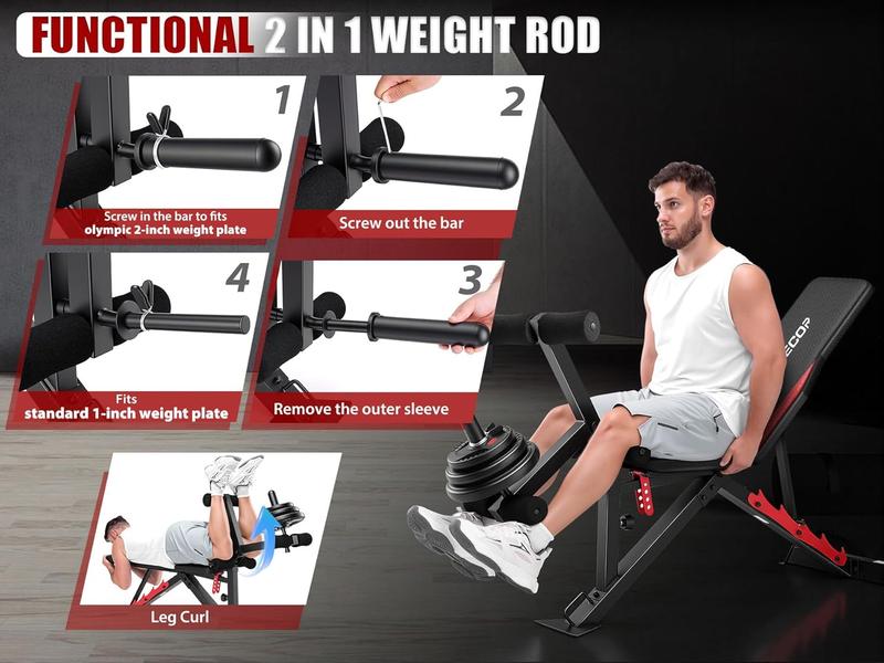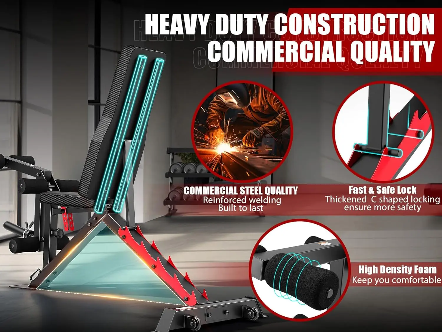 ·【Upgraded Multi Functional Weight Bench】Built with 1.5mm thickness steel and a robust design, this multi-functional weight bench safely supports up to 1200 lbs, ensuring unwavering stability and durability high intensity workouts.
