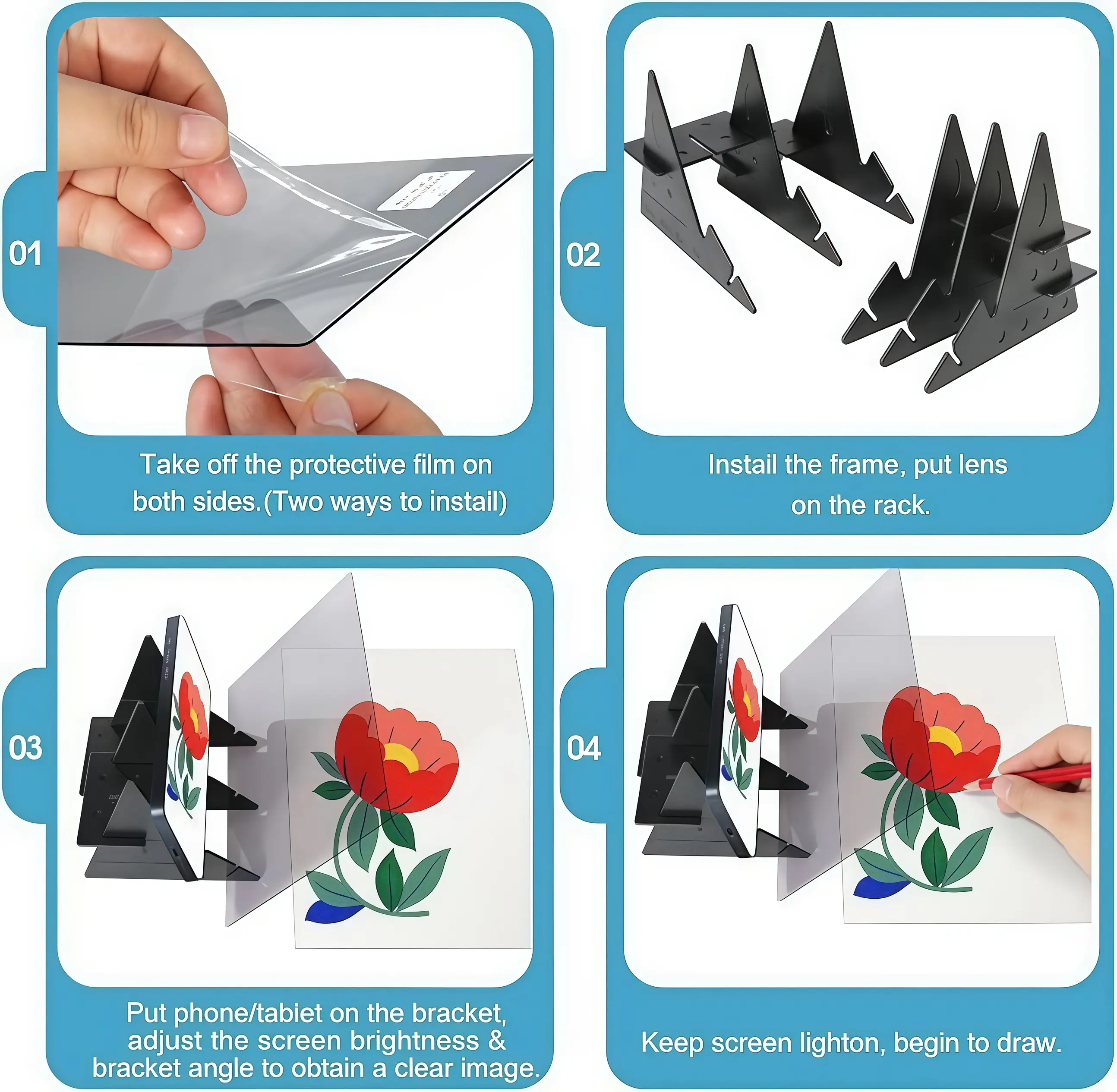 Transform any image into a stunning hand-drawn sketch with our Optical Drawing Board. Perfect for small drawings, artwork sketches, or learning to draw. Ensure to peel off the protective film before use to avoid unclear images. This board is ideal for beginners and offers quick setup with two mounting options.