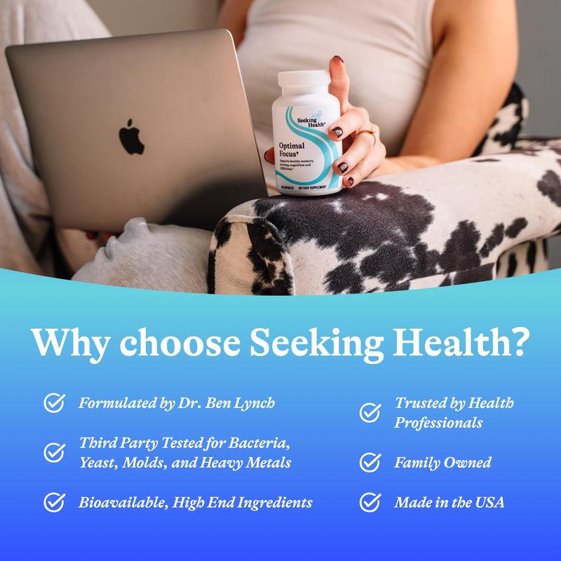 ·Consistent quality: At Seeking Health, every ingredient is carefully sourced, researched, and tested. Each meets strict specifications for manufacturing and quality standards before any ingredient is allowed for use