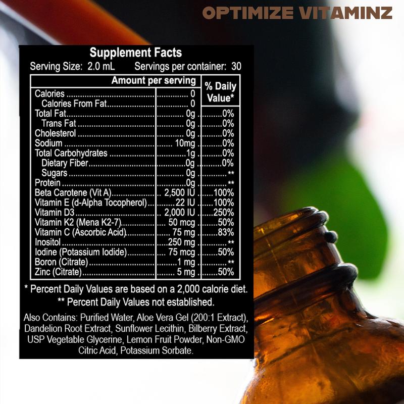 Optimize Vitamins is another first of its kind containing all whole food, fat soluble vitamins A,E,D3, K2 Menna 7, paired with functional herbs, antioxidants and essential trace minerals we can not get from our diets.