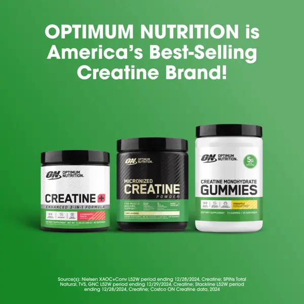 Made using premium ingredients and a process that includes 250+ rigorous tests to deliver the highest quality products, our Creatine Monohydrate Gummies are everything you want and expect from Optimum Nutrition – the #1 Creatine Brand in the United States.**
