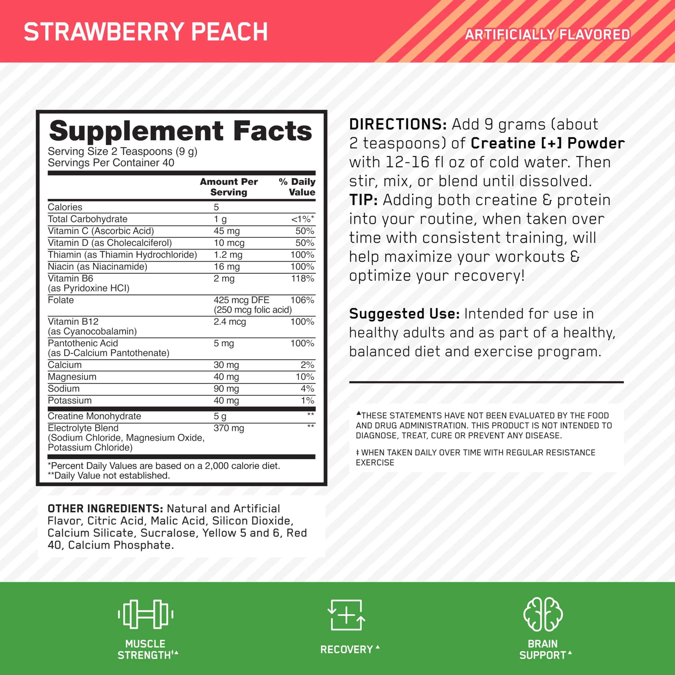 Optimum Nutrition CREATINE + STRAW PEACH .79LB:
